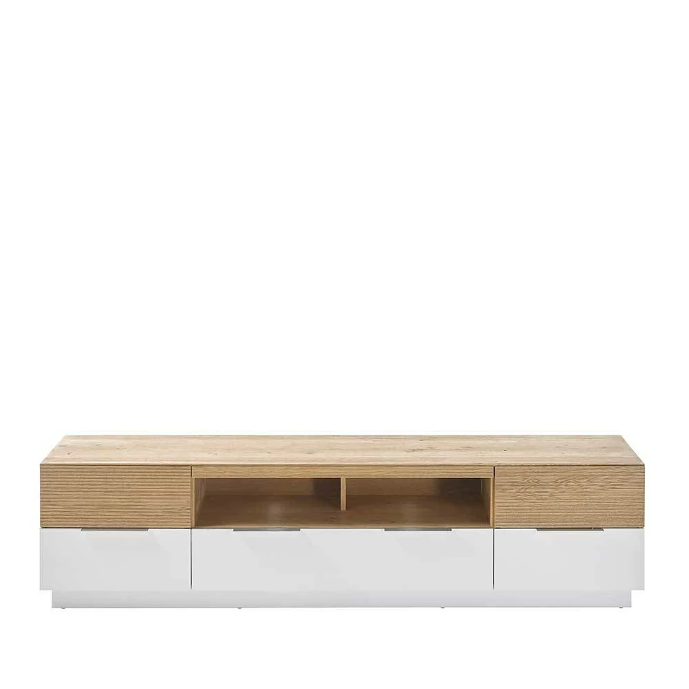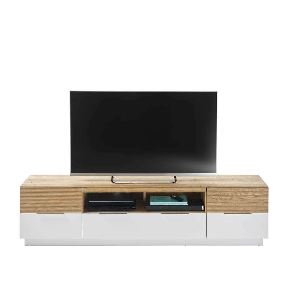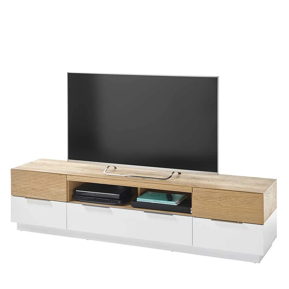 - Smartes TV-Board in Eichefarben und Weiß