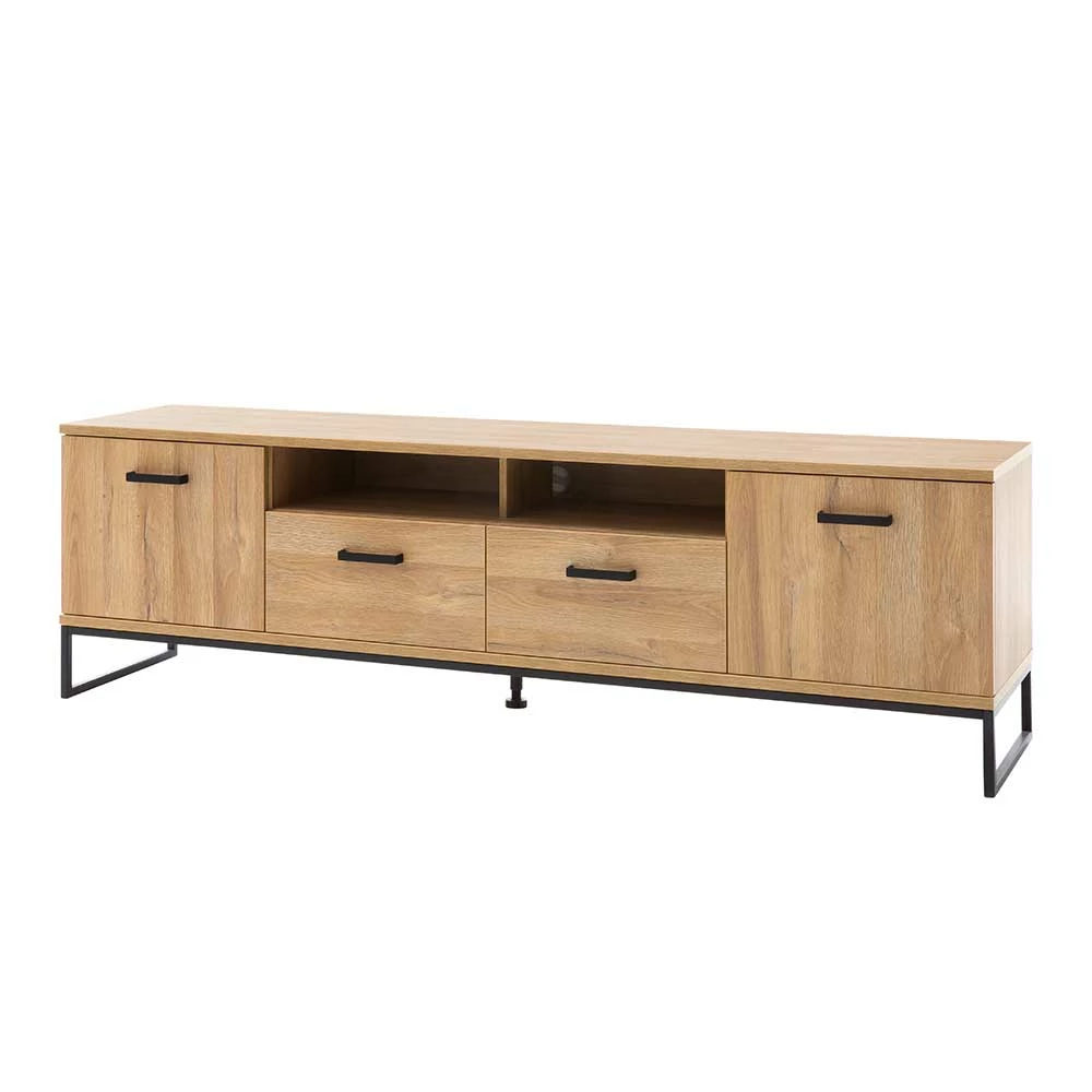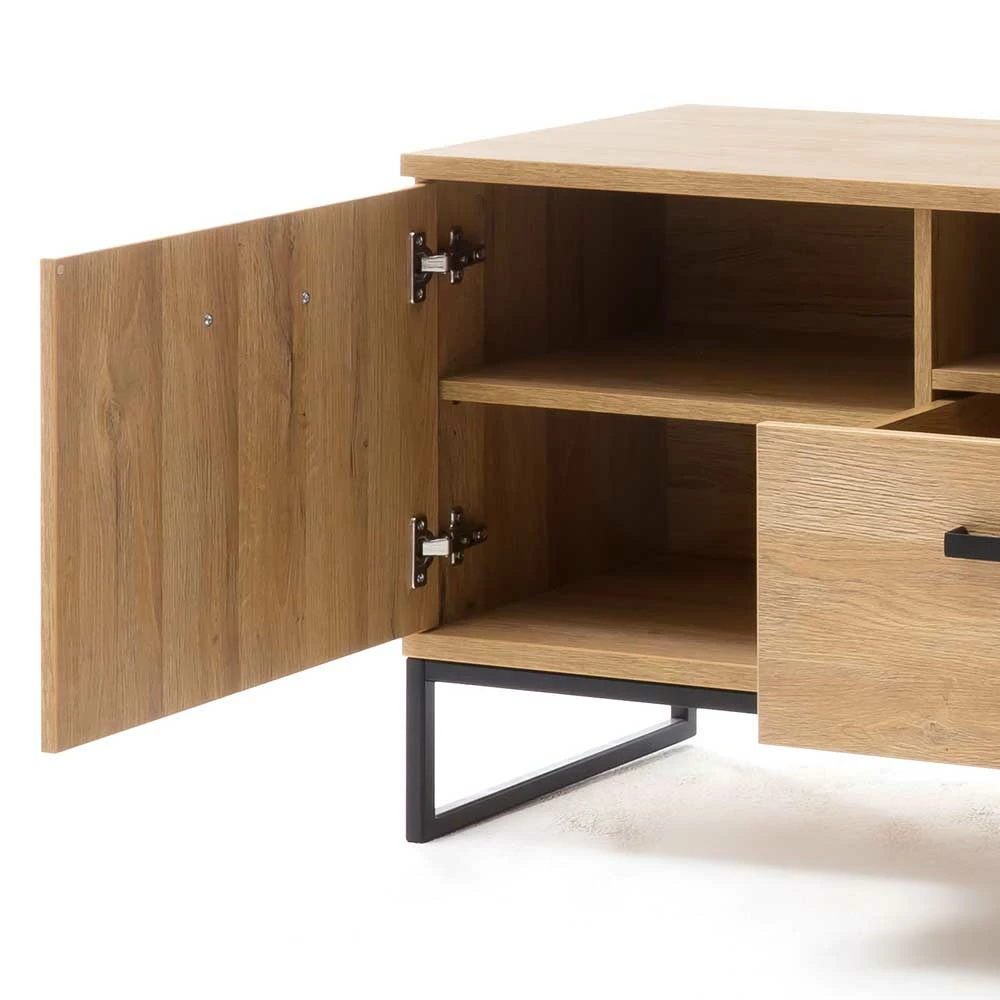 - Großzügiges TV-Board in Wildeichefarben und Schwarz