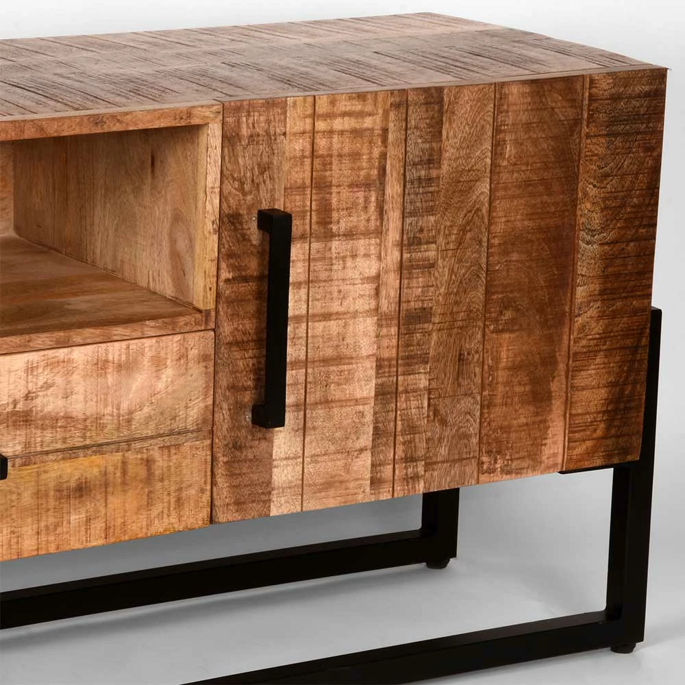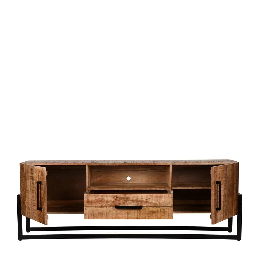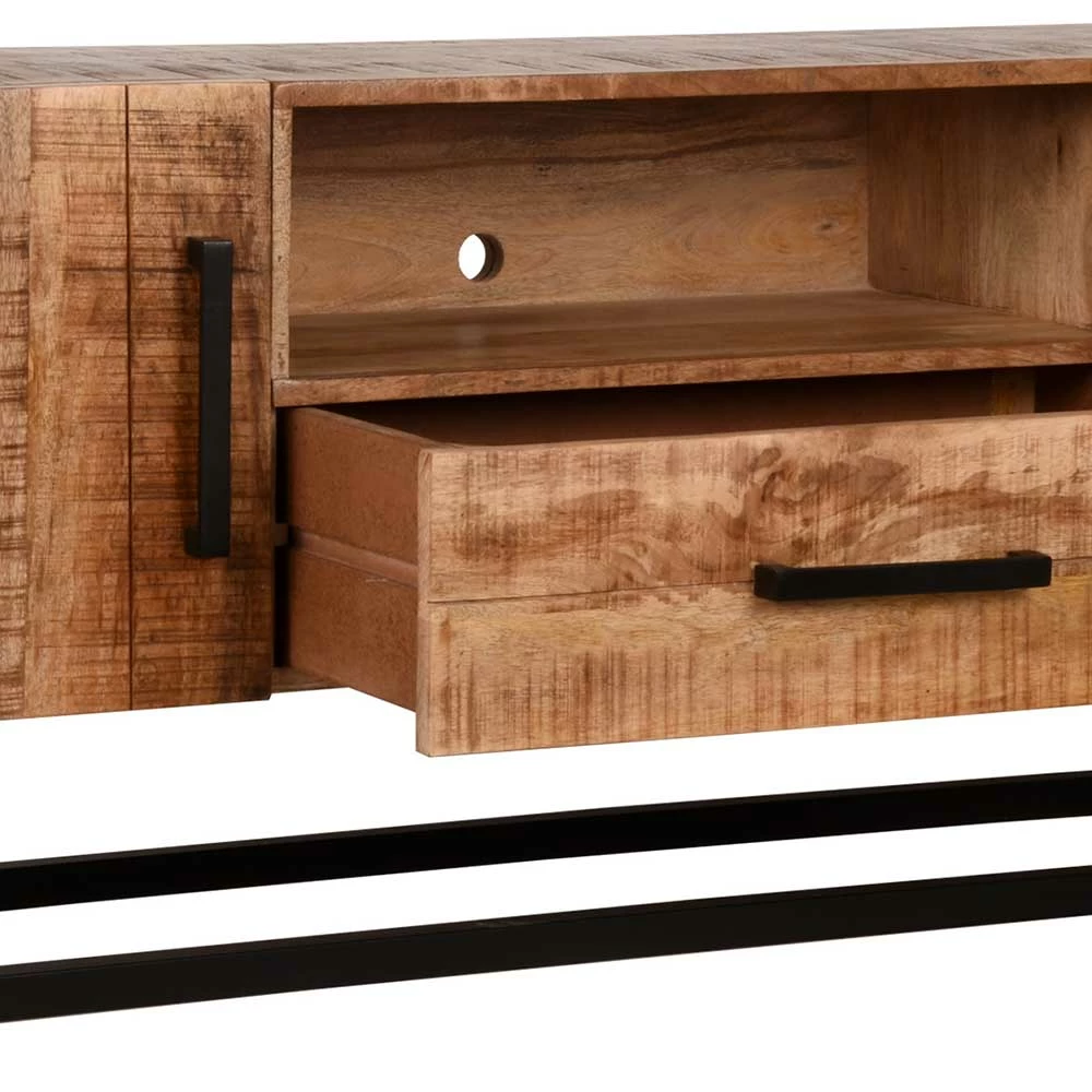 - Angesagtes TV Möbel in Mangoholz Naturfarben und Schwarz