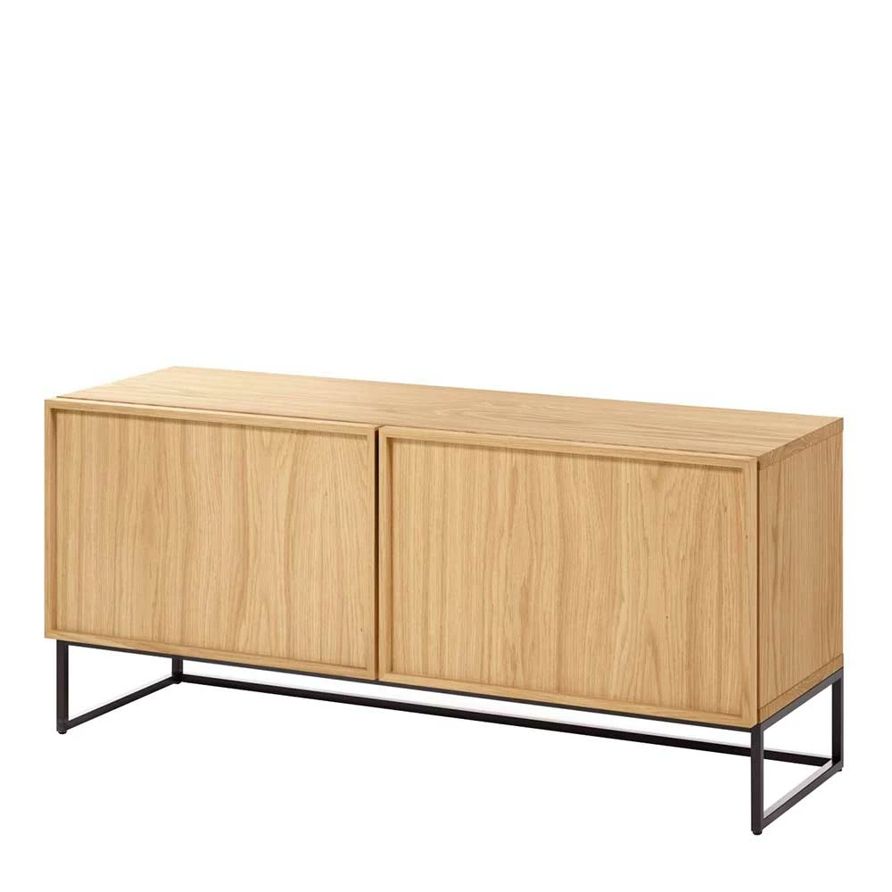 - Komaktes TV-Lowboard in Eichefarben und Schwarz