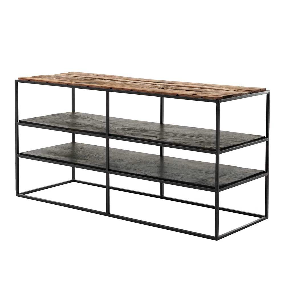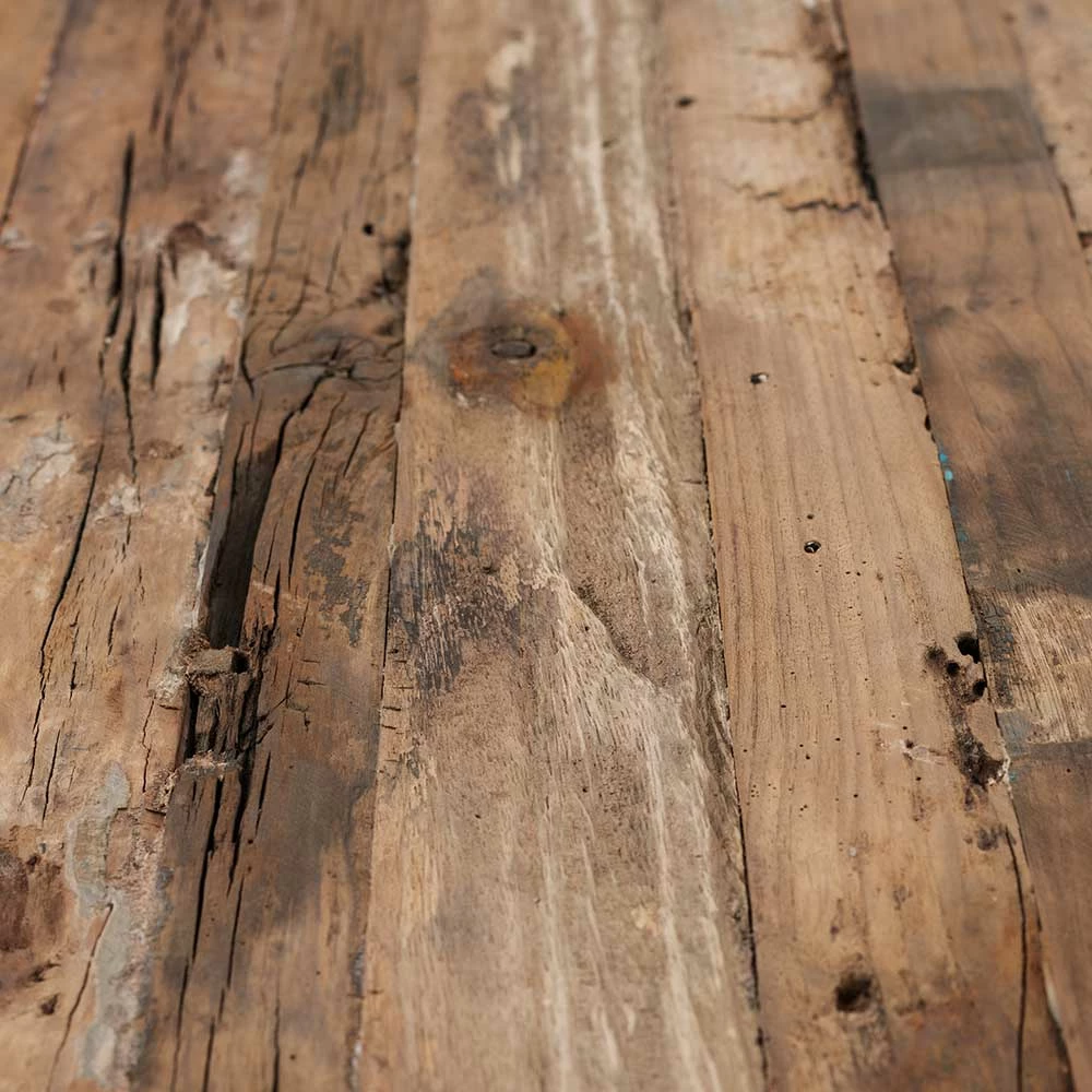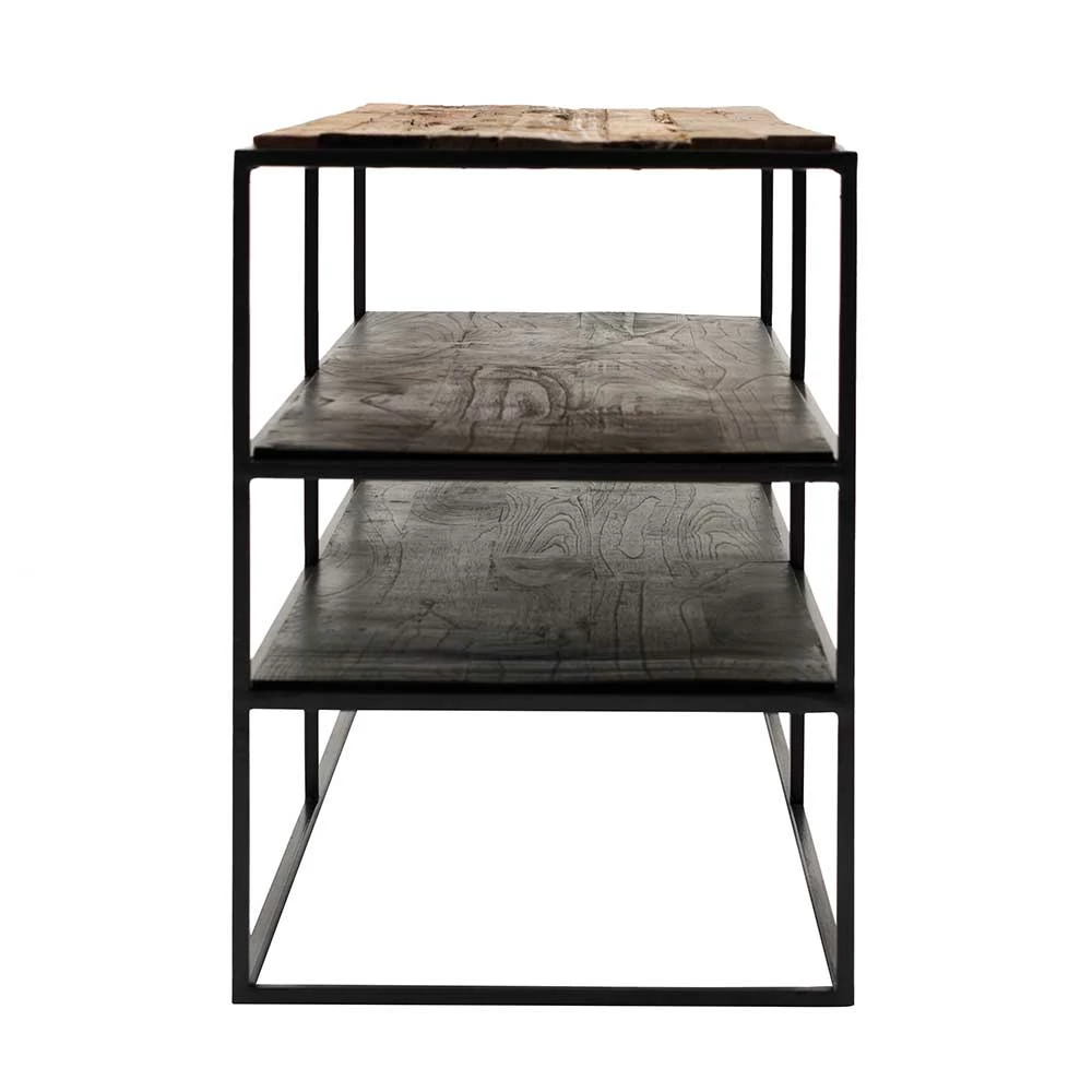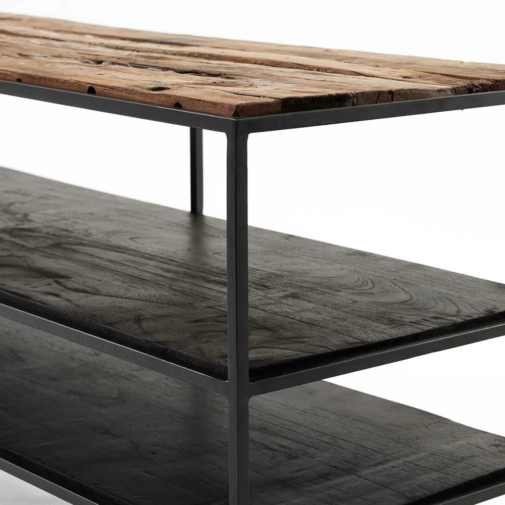 - Angefertigt aus massivem Mindiholz (schwarze Böden), recyceltem Massivholz (Oberboden) und Eisen