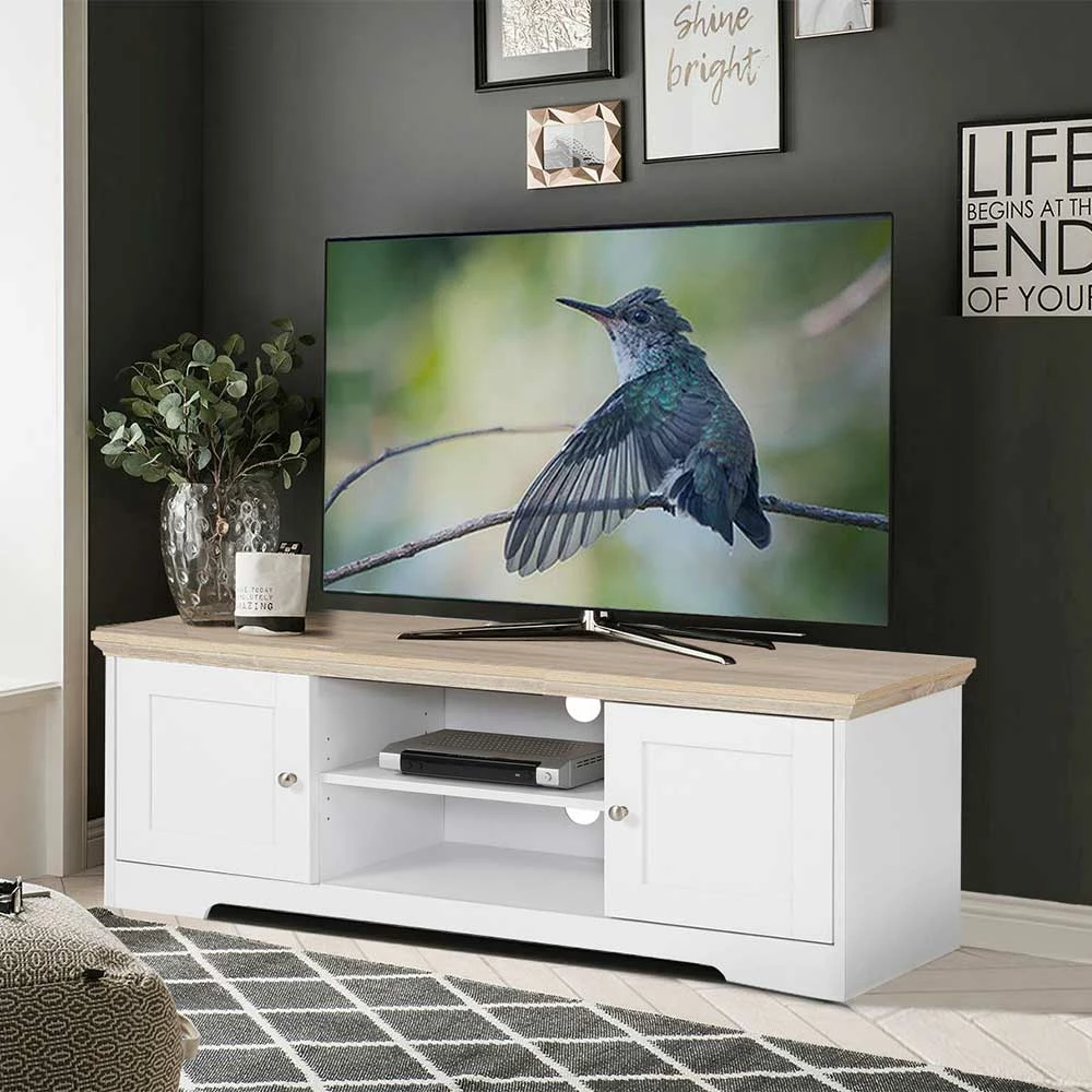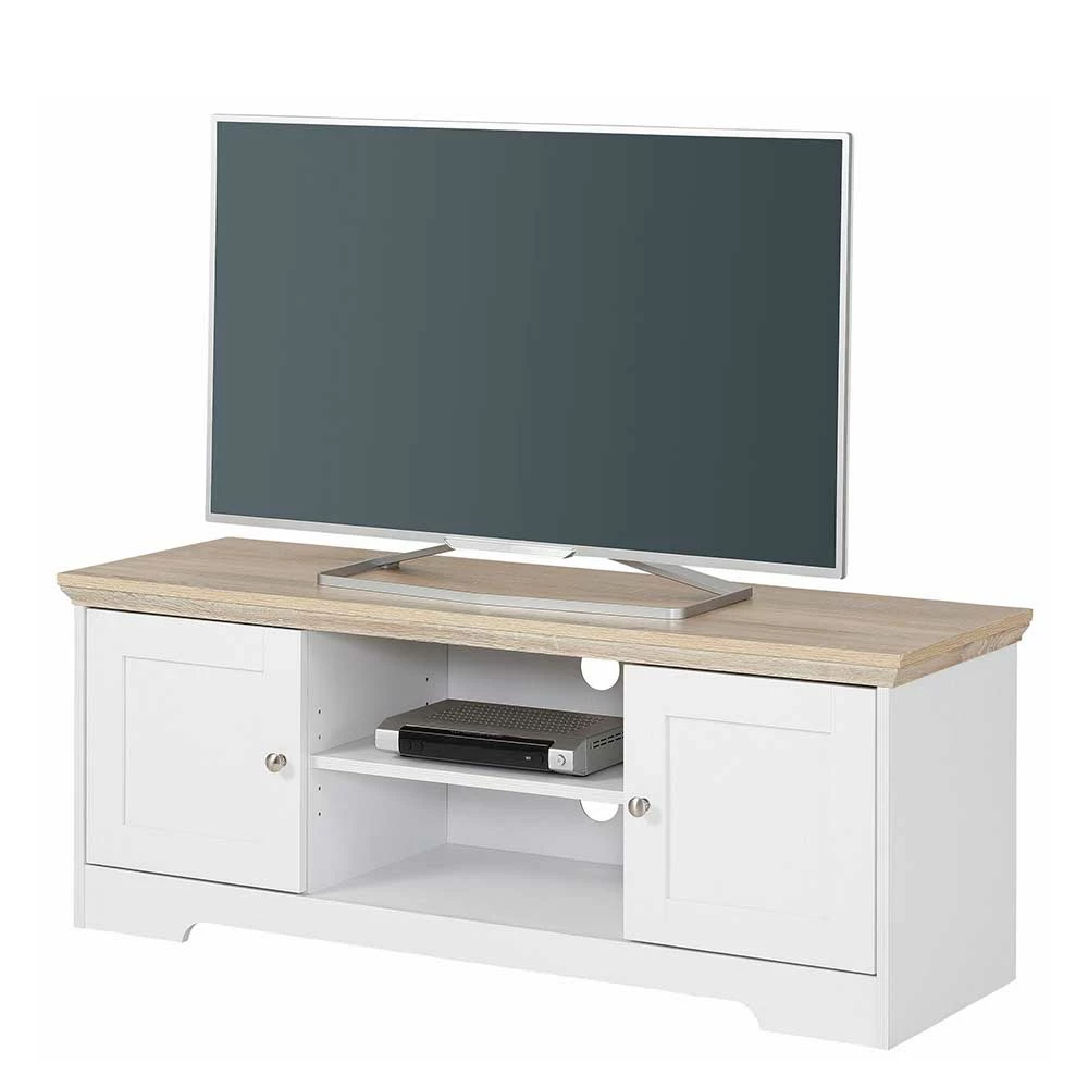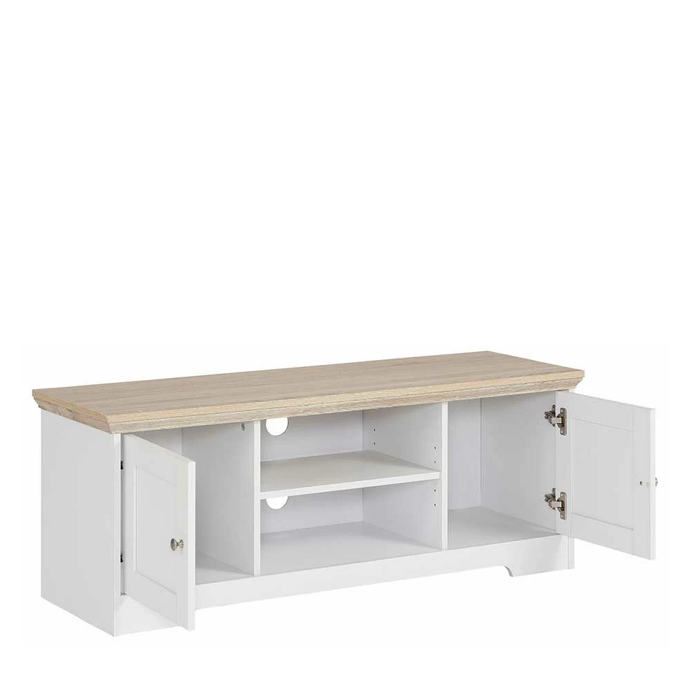 - Harmonisches TV-Board in Weiß und Eichefarben