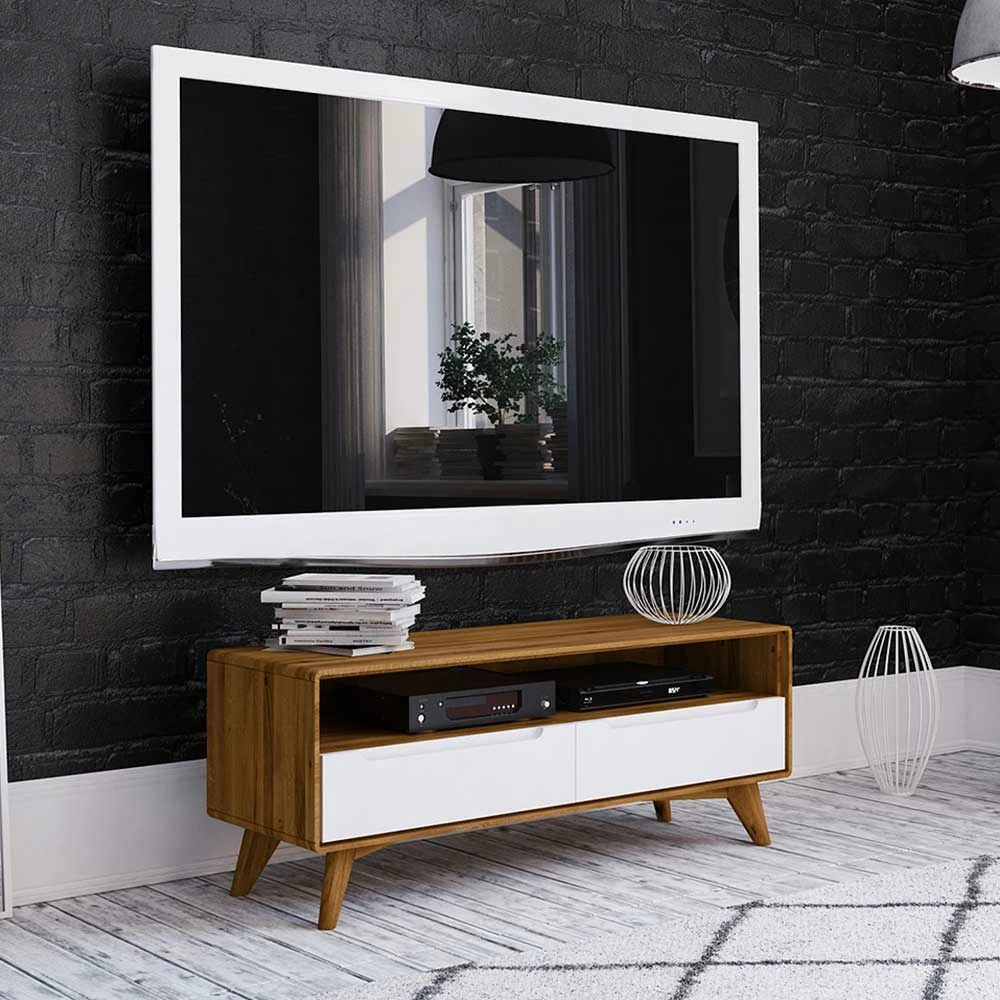 - Beeindruckendes TV-Board in Wildeichefarben und Weiß