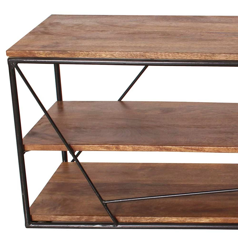 - Beeindruckendes TV-Lowboard in Mangoholz Naturfarben und Schwarz