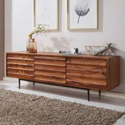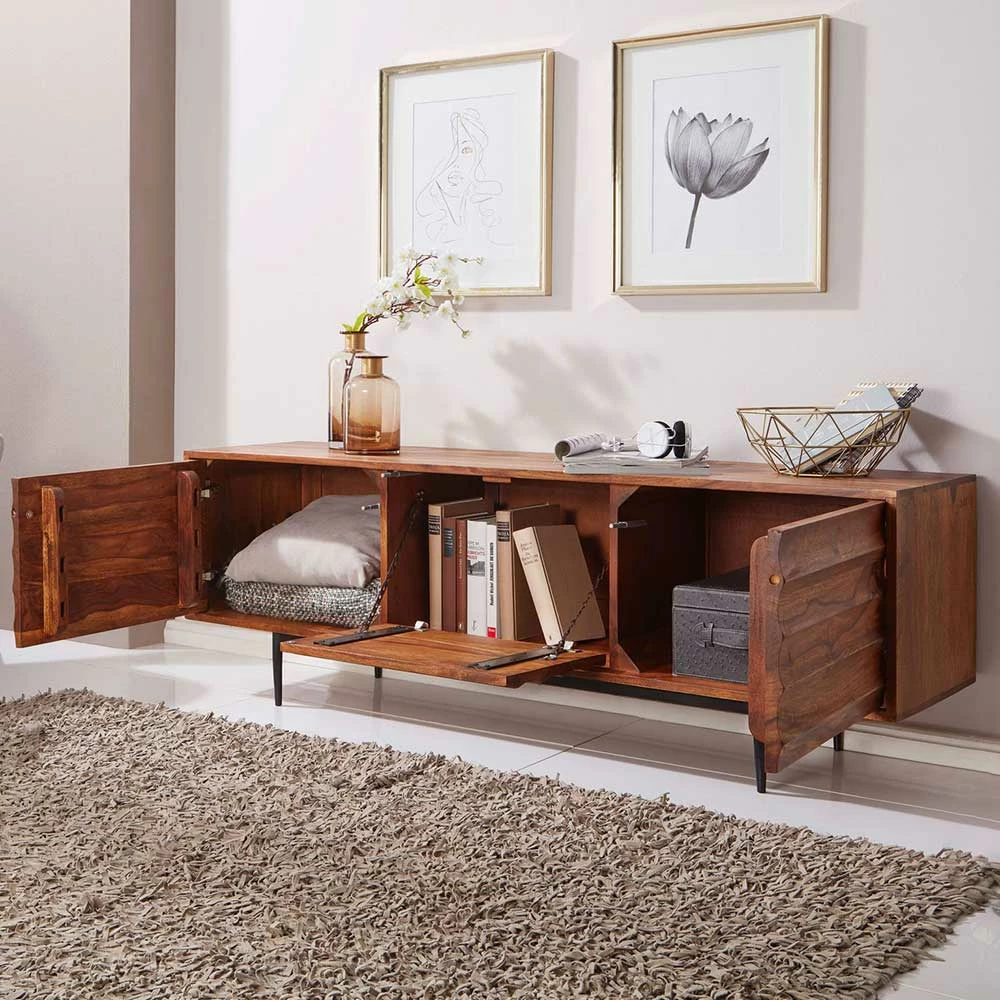 - Ausgefallenes TV-Lowboard in Sheeshamfarben und Schwarz