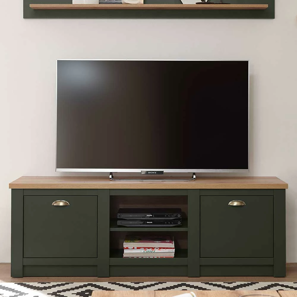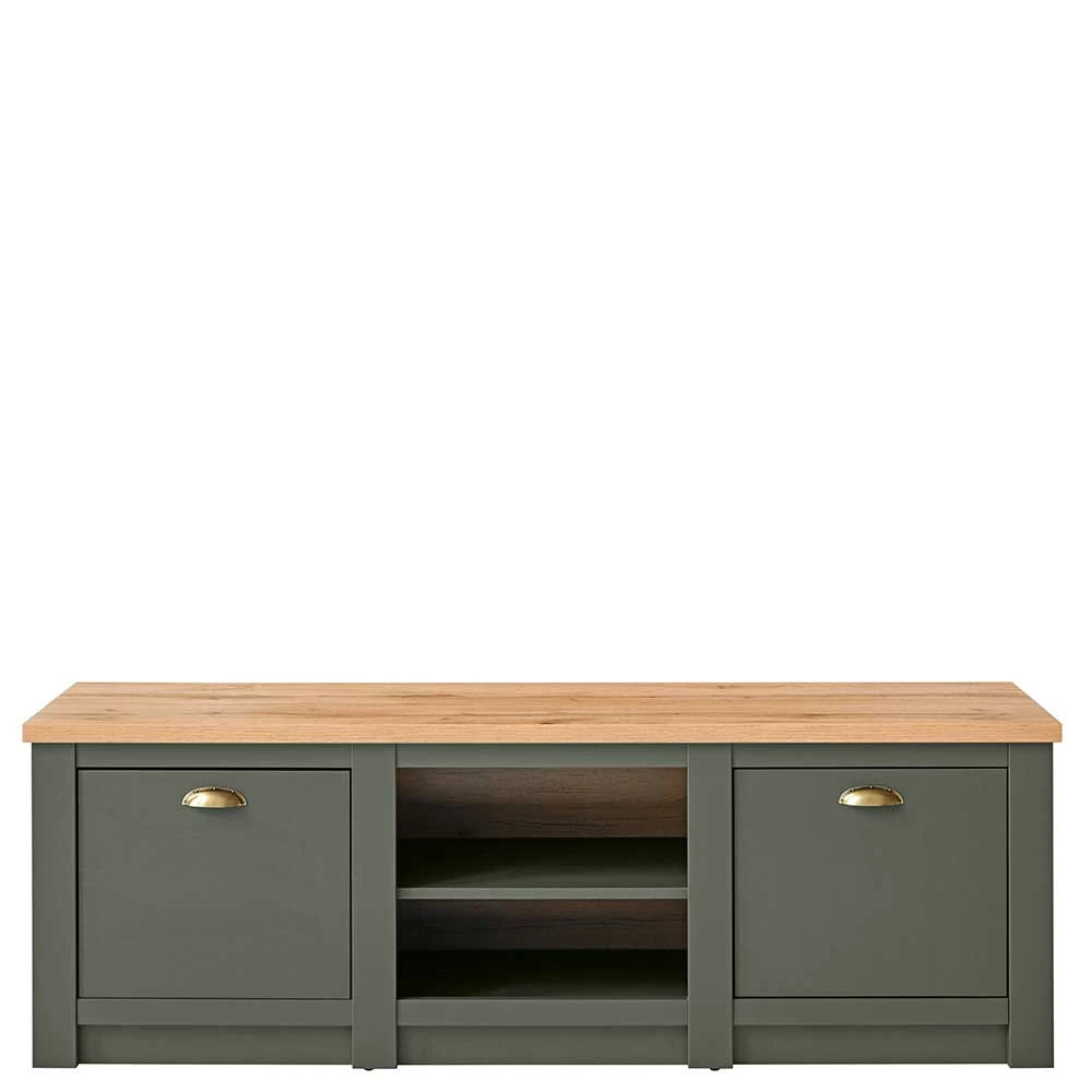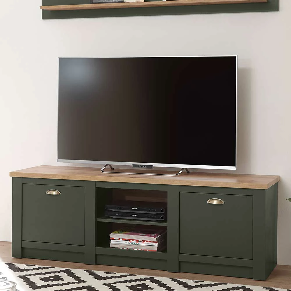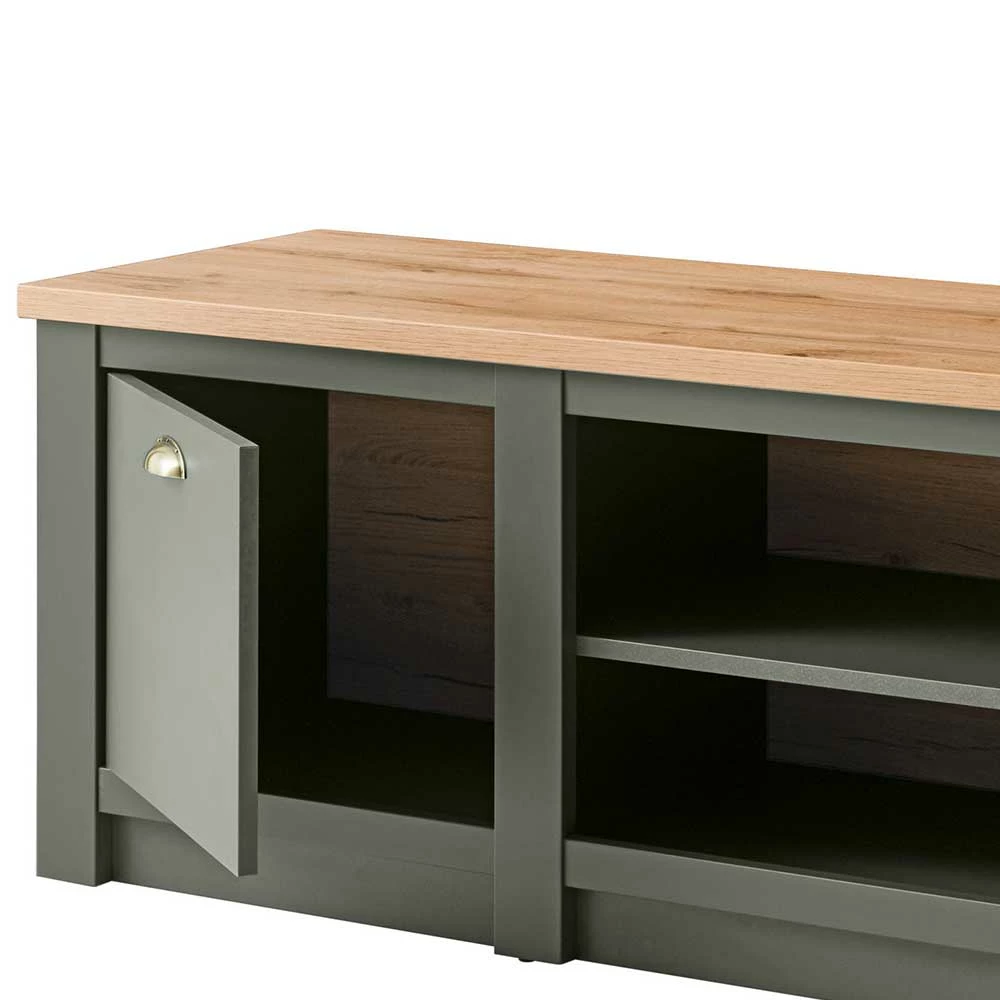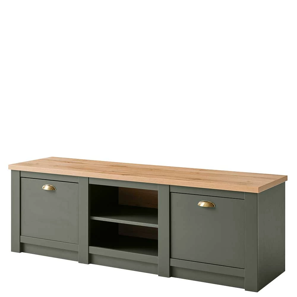 - Erstklassiges TV-Lowboard in Graugrün und Wildeichefarben
