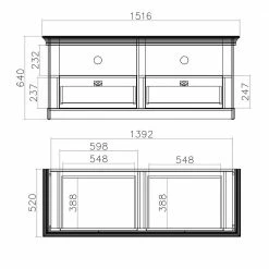 - Innenmaße der Schubladen: BxHxT: ca. 54x12x38 cm