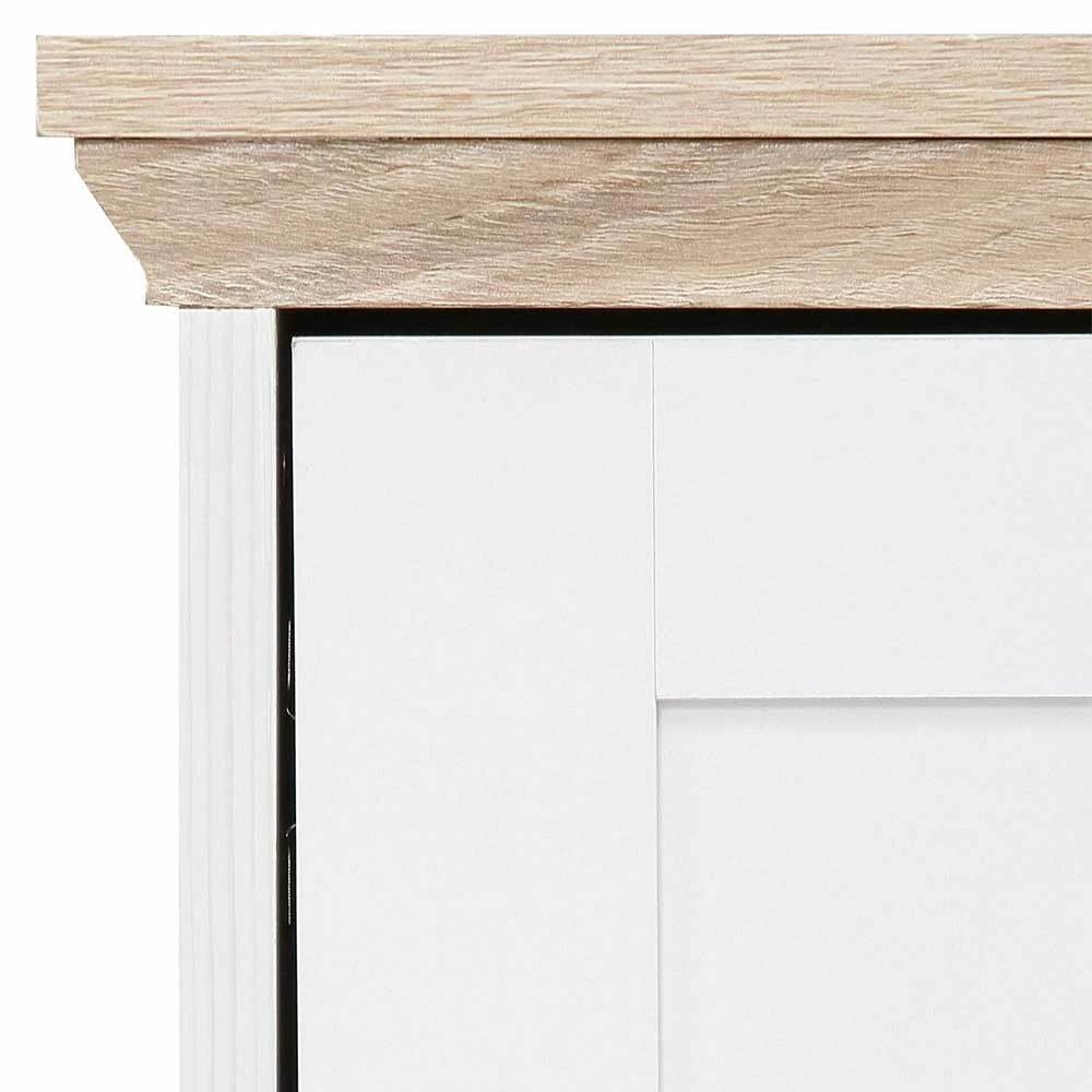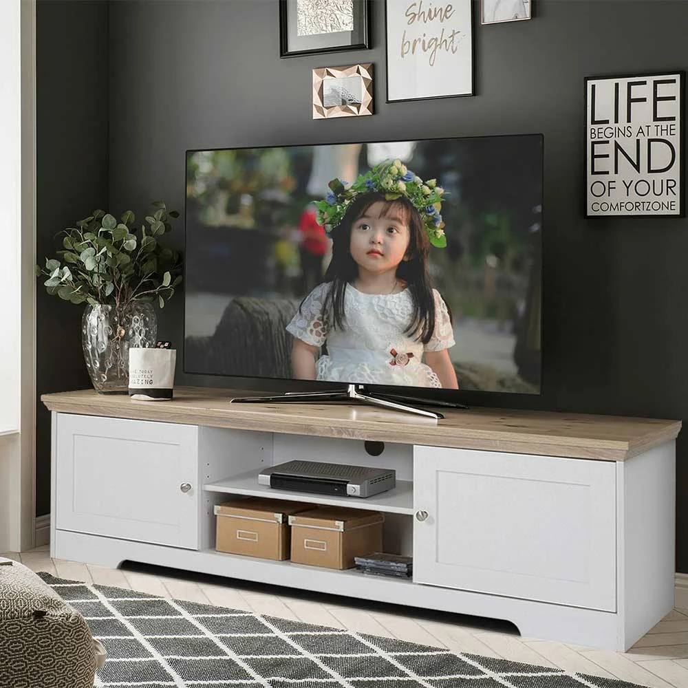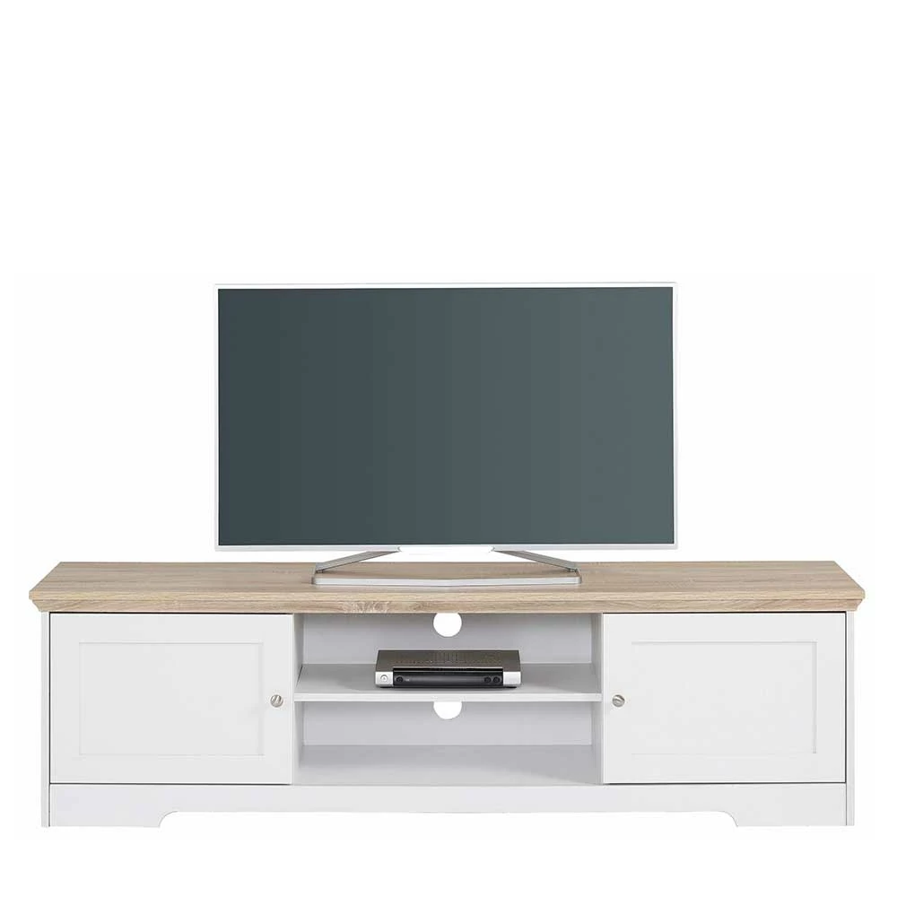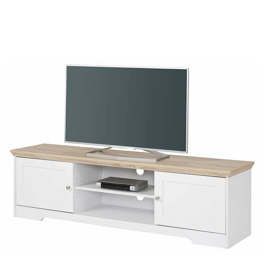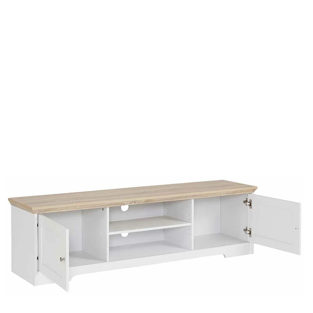 - Großzügiges TV-Board in Weiß und Eichefarben