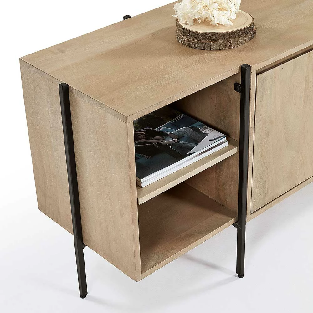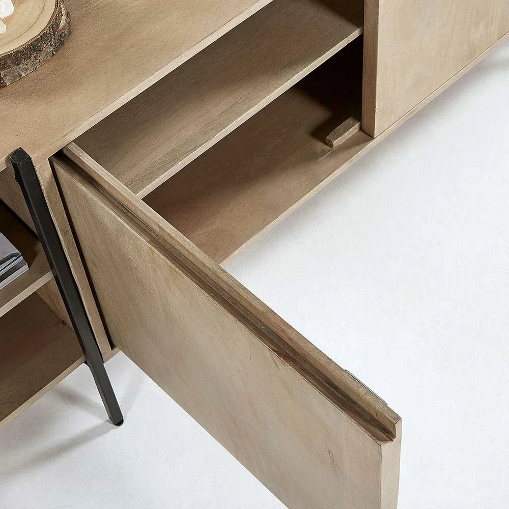 - Attraktives TV-Board in Mangobaumholz hell und Schwarz
