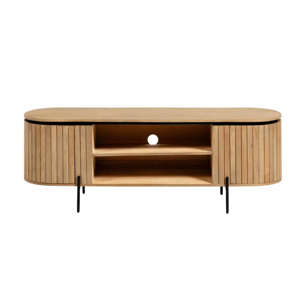 - Dekoratives, ovales TV-Board in Holz Naturfarben und Schwarz