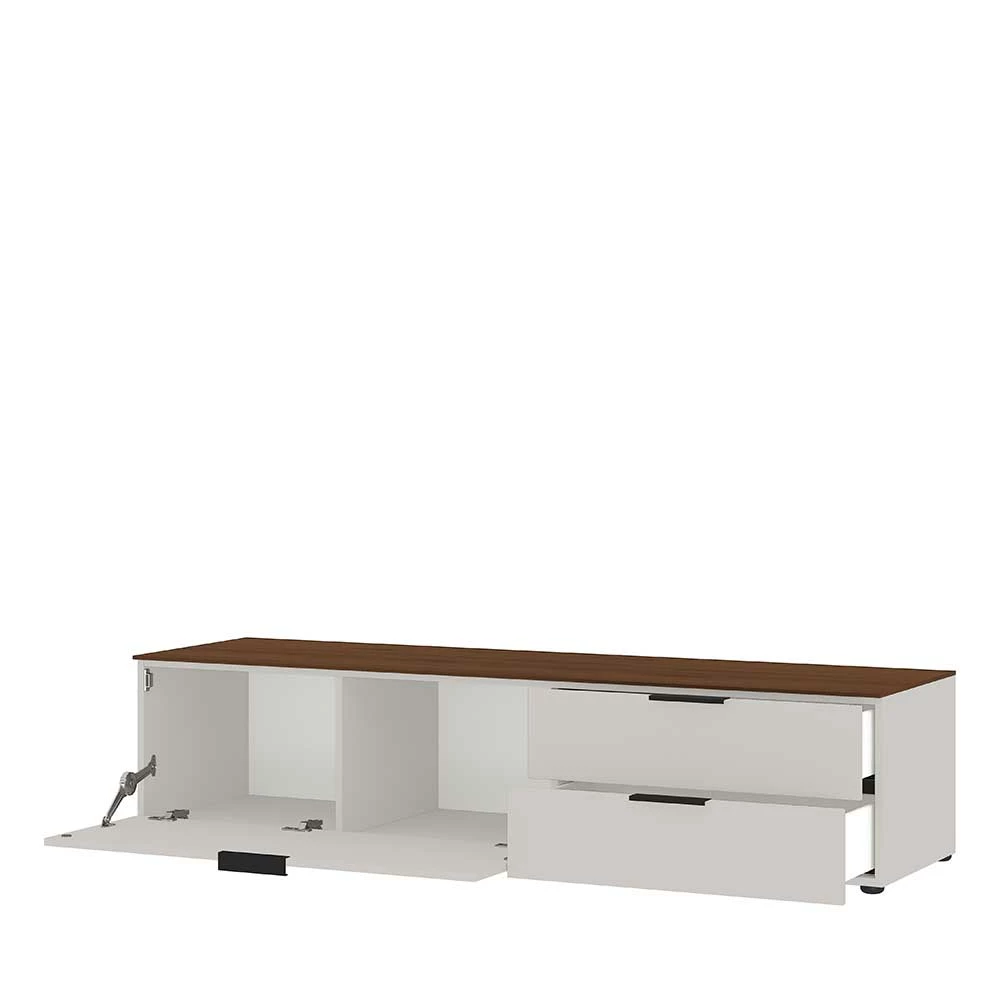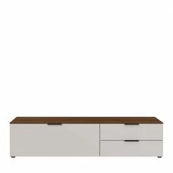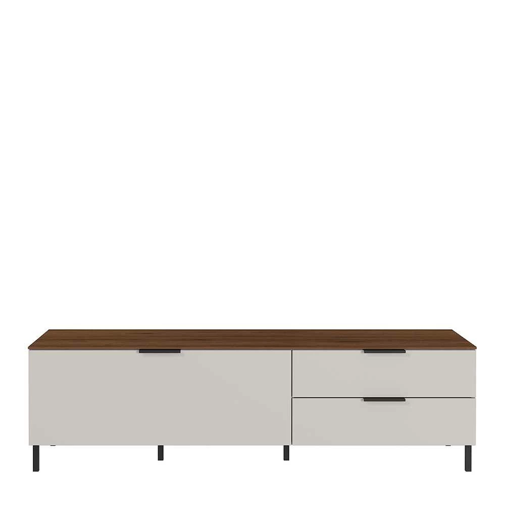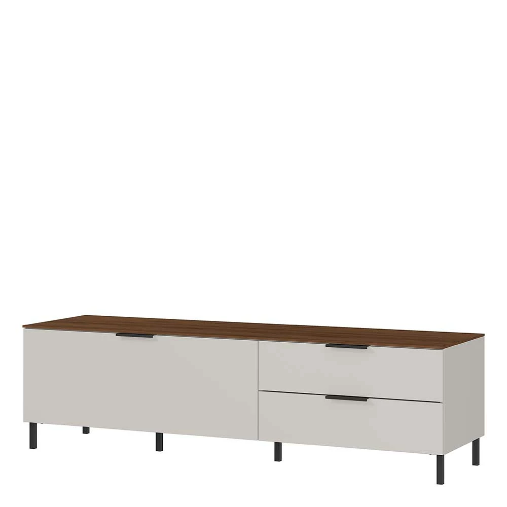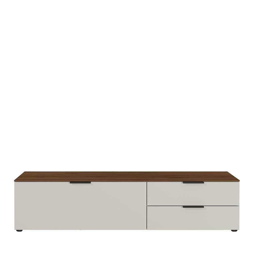 - Trendiges Lowboard in Hellgrau und Nussbaumfarben