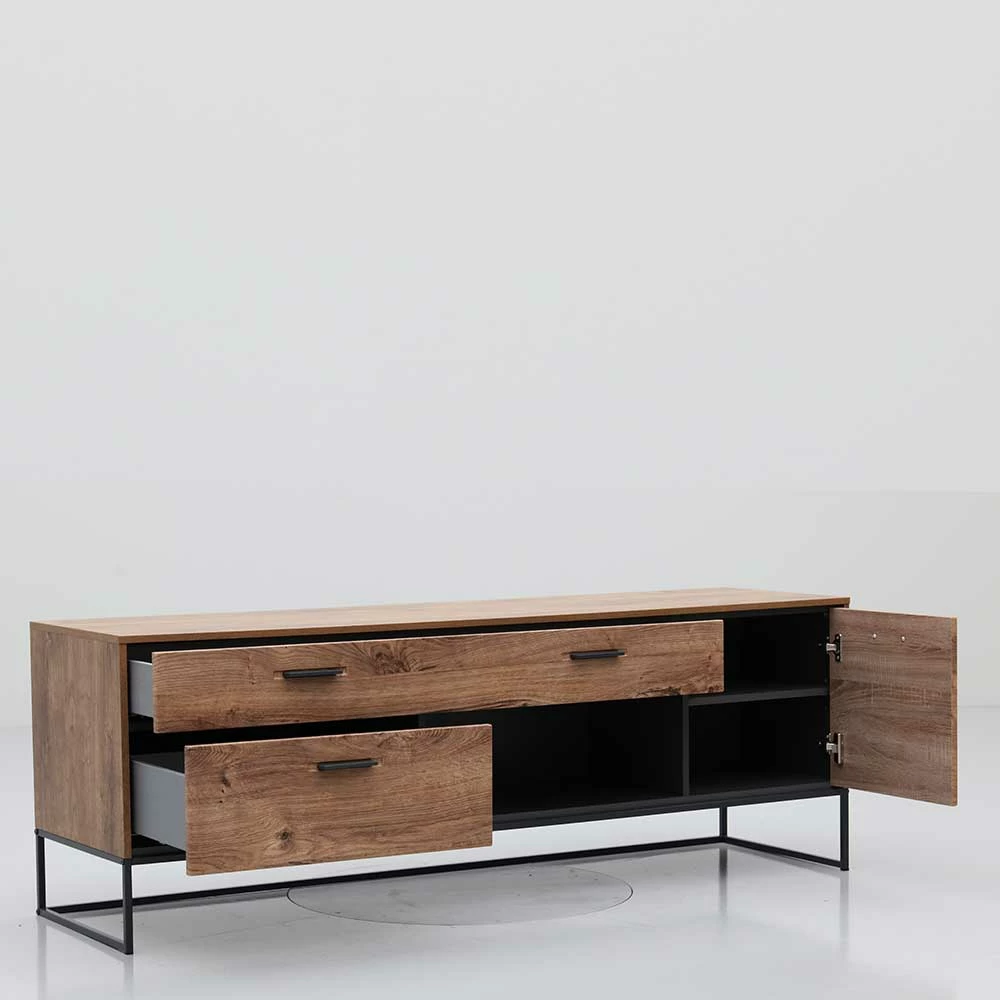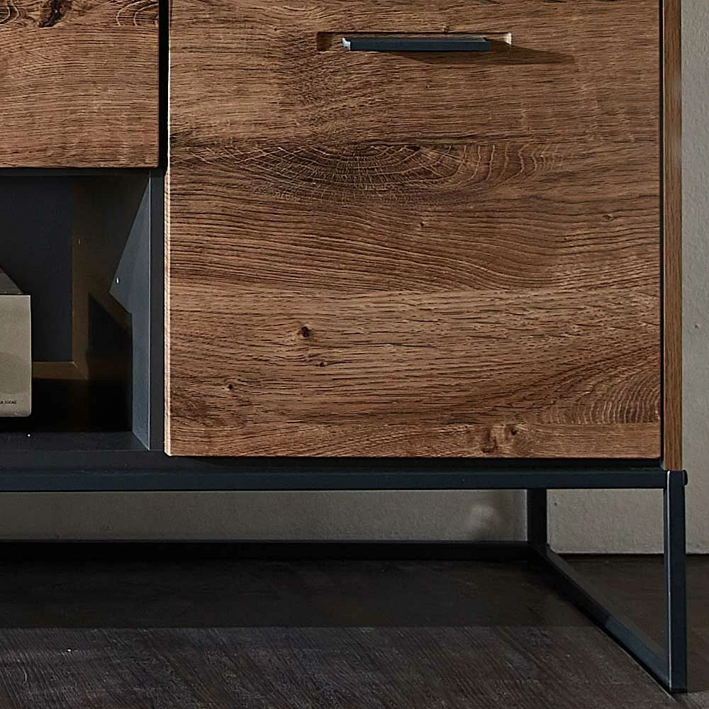 - Großzügiges TV-Board in Eiche dunkel und Dunkelgrau
