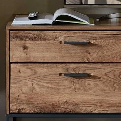 - Folierte Oberfläche in Holzoptik Eiche dunkel, Gestell pulverbeschichtet