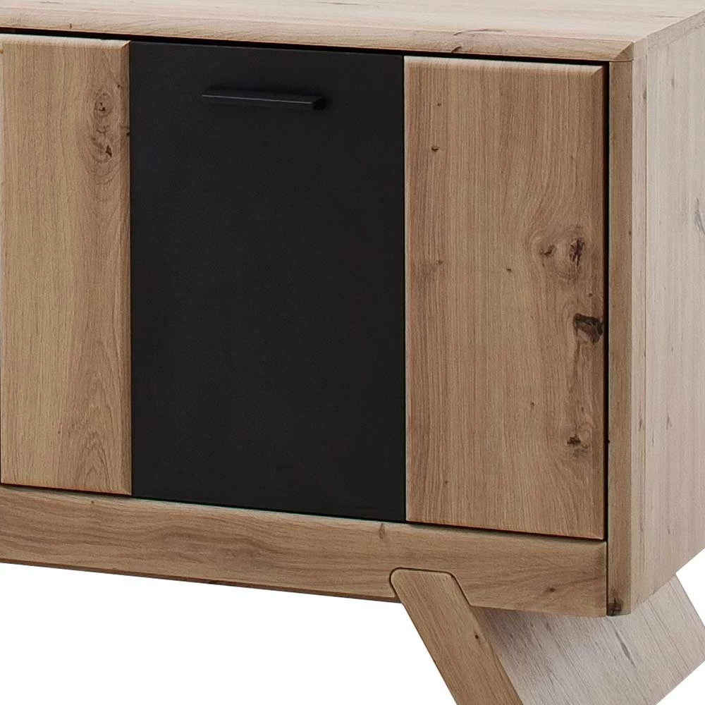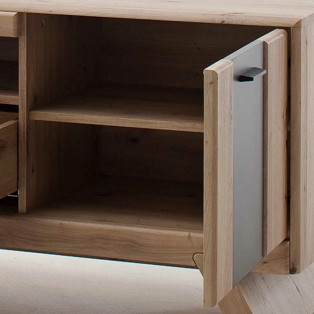 - Dekoratives TV-Board in Eichefarben und dunkel Grau