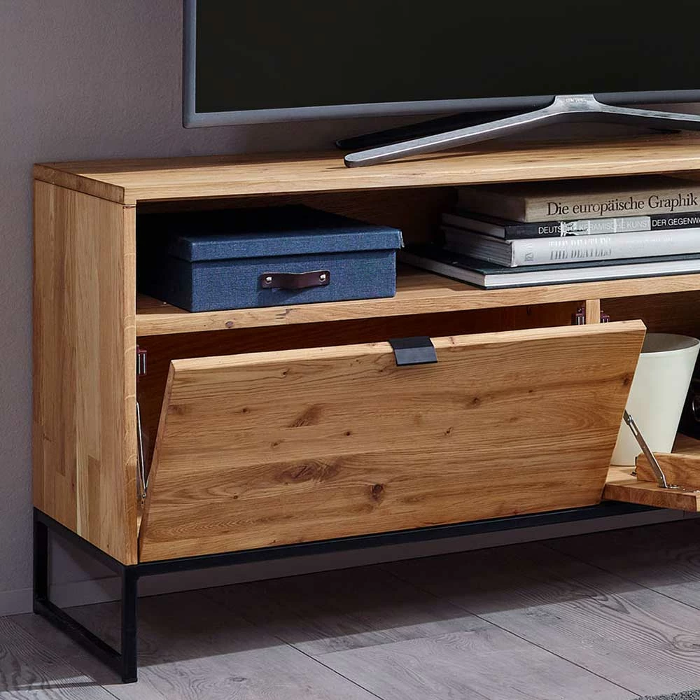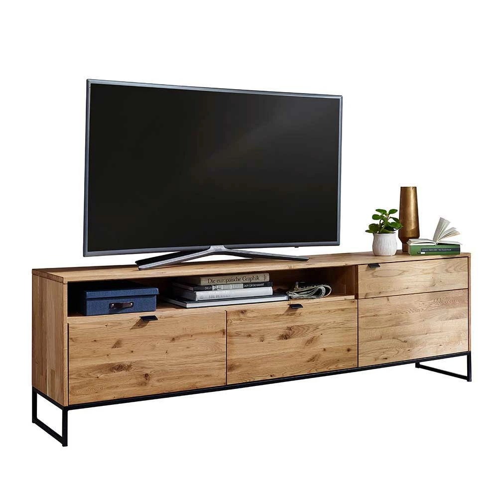 - Exklusives TV-Lowboard in Wildeichefarben und Schwarz