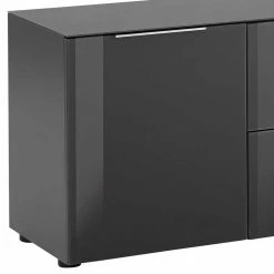 - Oberflächen kratzfest melaminbeschichtet in Anthrazit, Front mit Glas beschichtet, Deckplatte aus Einscheibensicherheitsglas