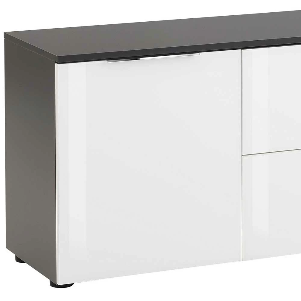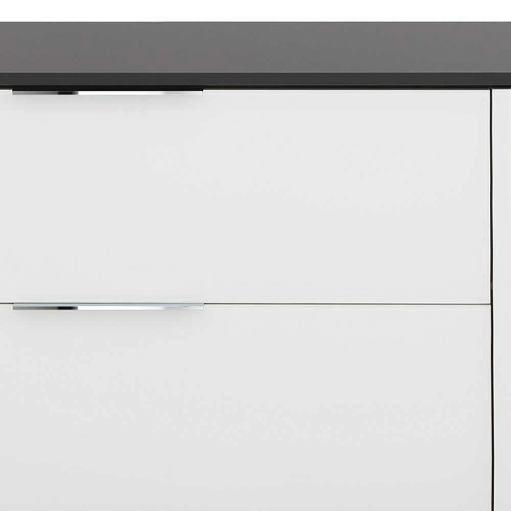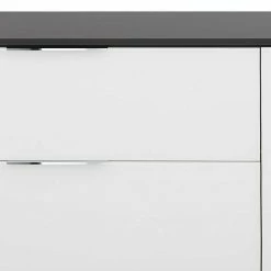 - Oberflächen kratzfest melaminbeschichtet in Anthrazit, Front mit Glas in Weiß beschichtet