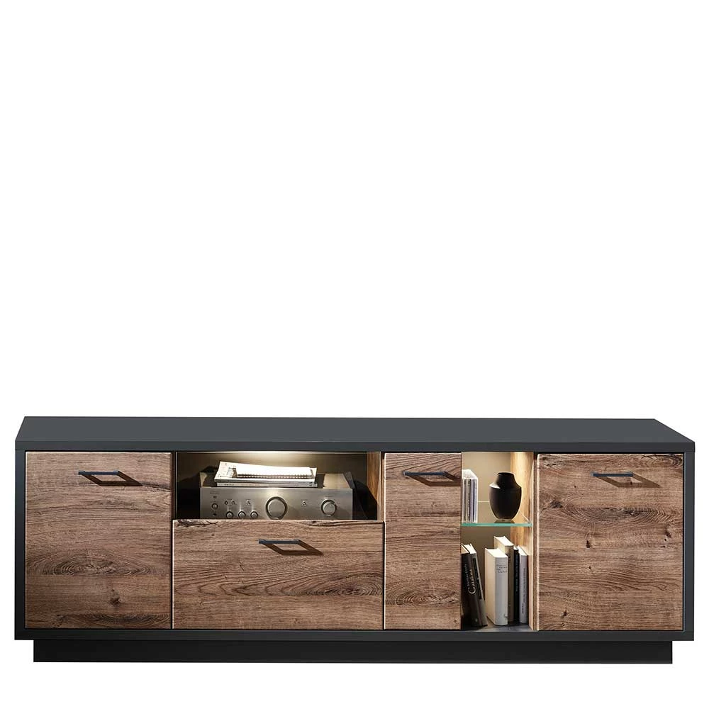 - Apartes TV-Board in Eiche dunkel und Dunkelgrau