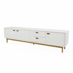 - Großzügiges Lowboard in Weiß und Eichefarben