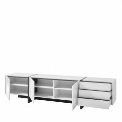 - Grandioses TV-Lowboard in Weiß matt und Schwarz