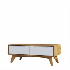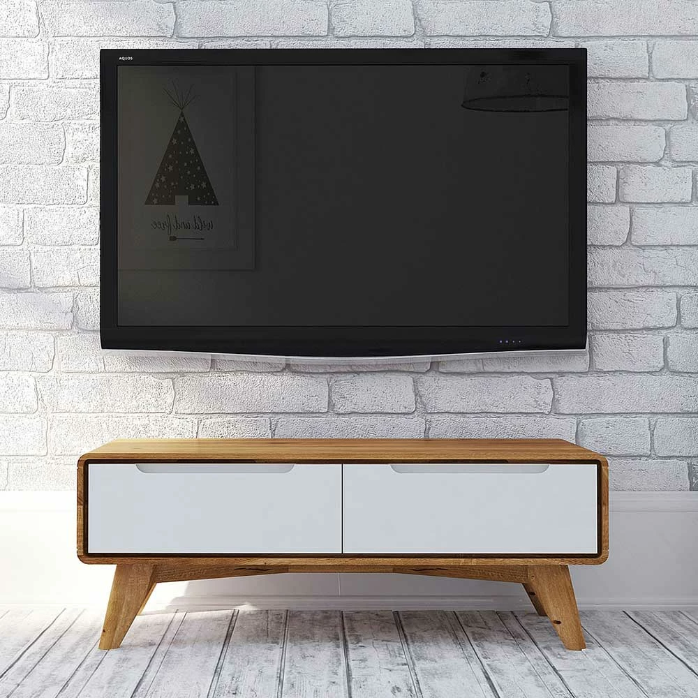 - Kompaktes TV Lowboard in Wildeichefarben und Weiß