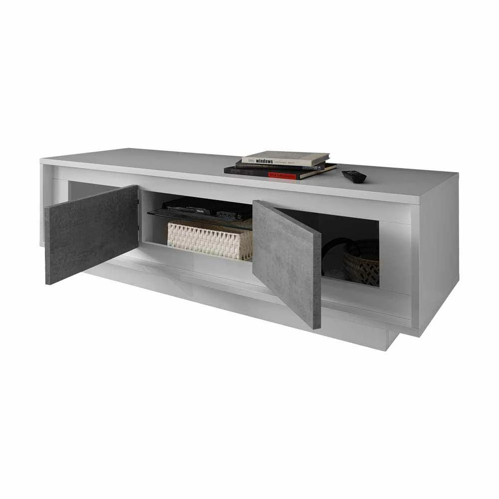 - Erlesenes TV-Element in Weiß und Beton Grau