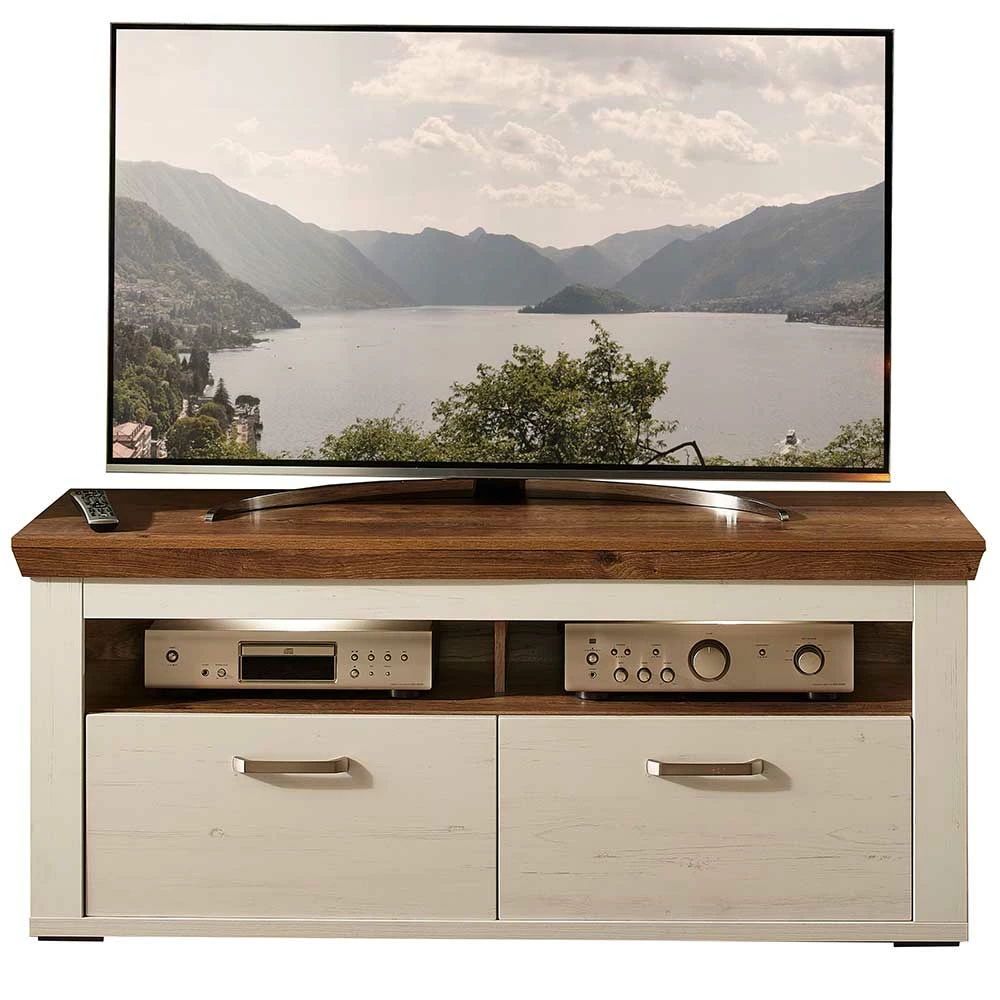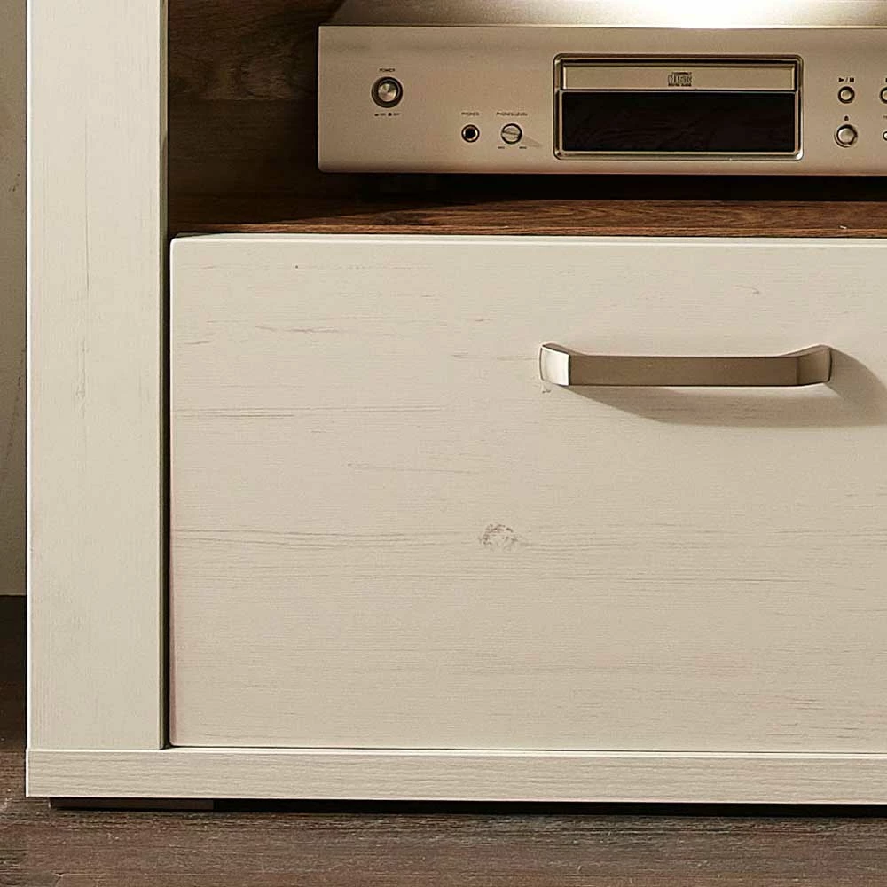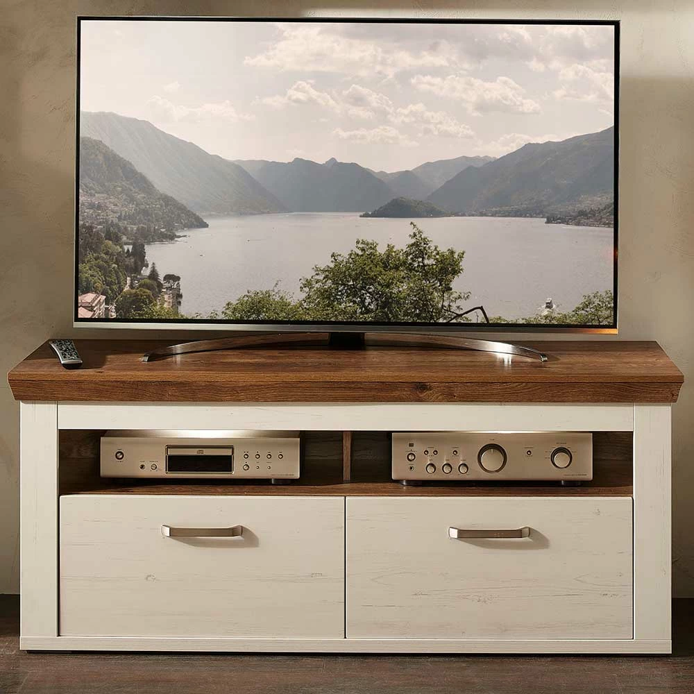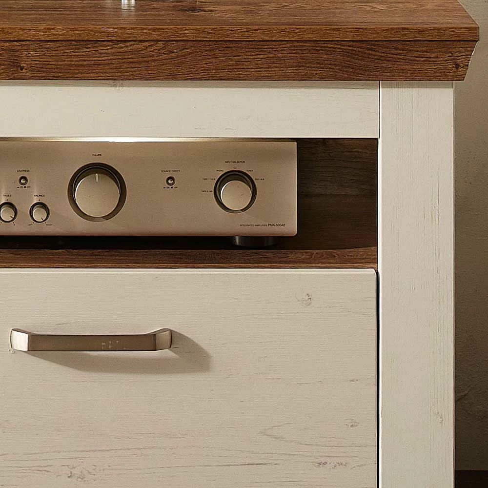 - Ansprechendes TV-Board in Weiß und Wildeiche dunkel