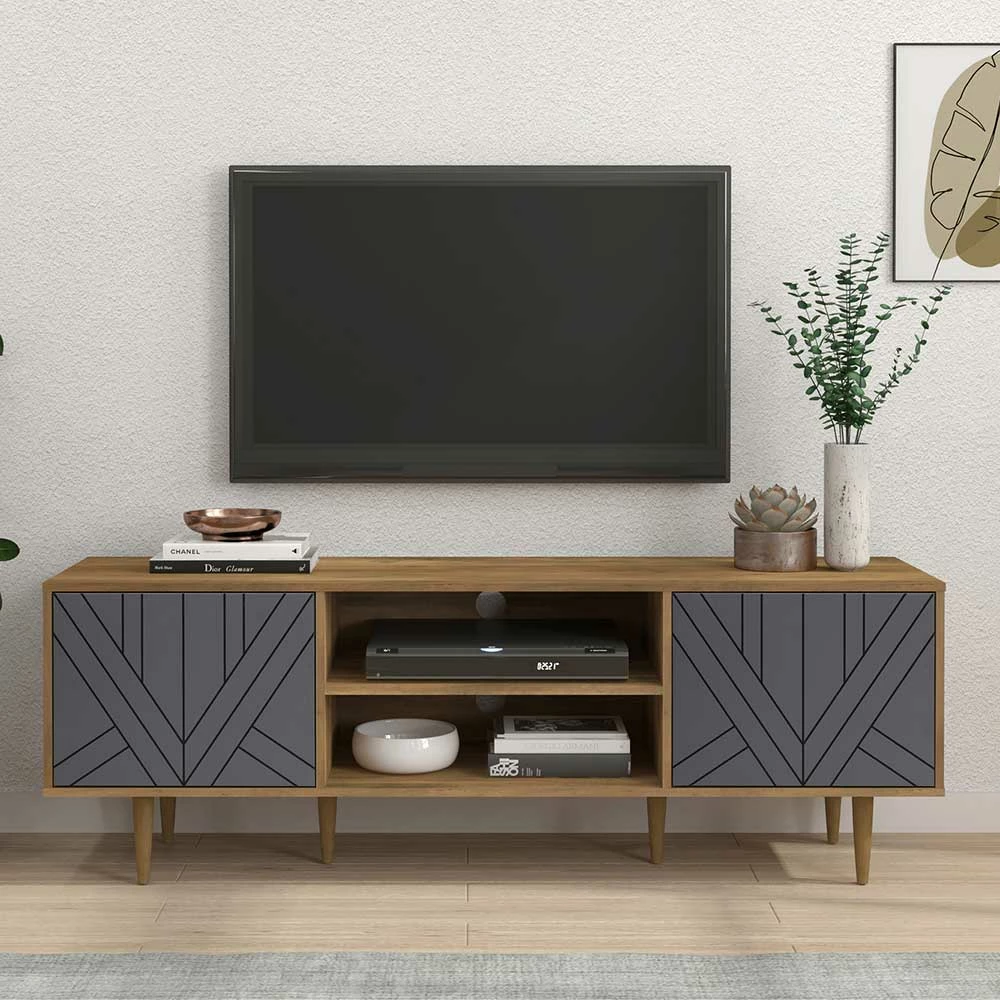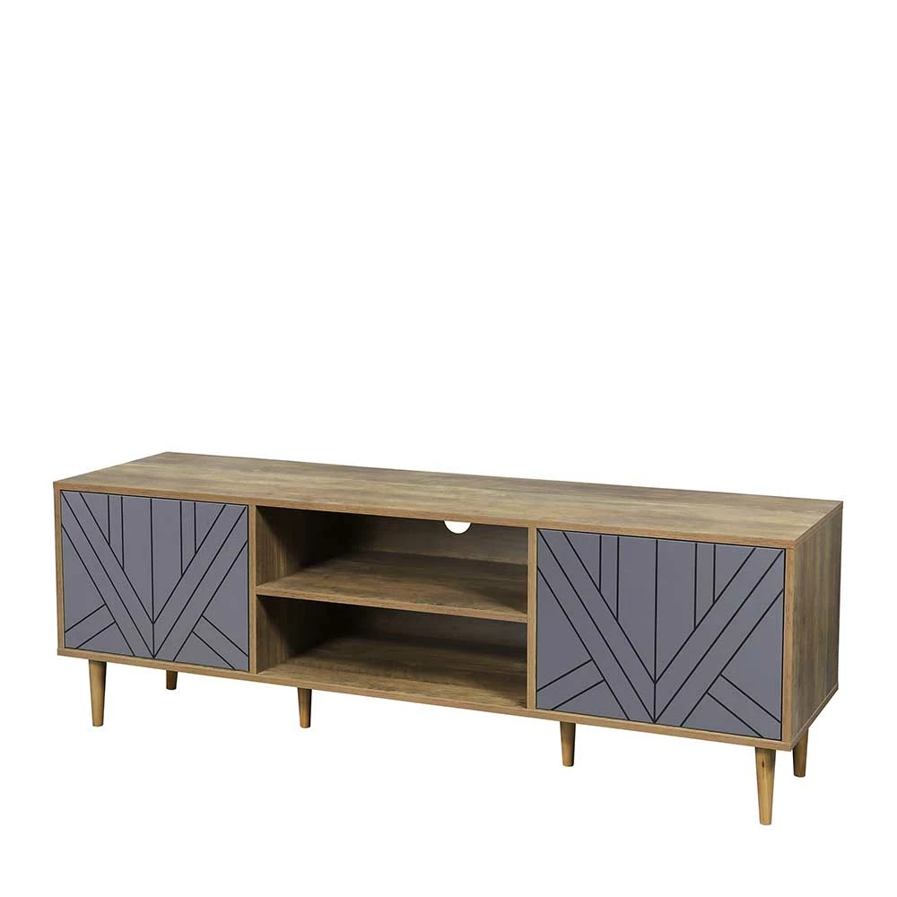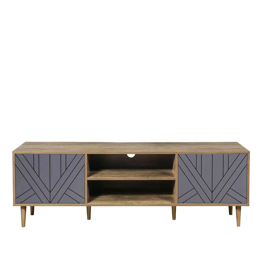 - Zeitgemäßes TV-Lowboard in Grau und Holz Naturfarben