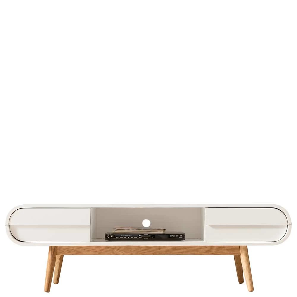 - Geschmackvolles TV-Board in Weiß und Eichefarben