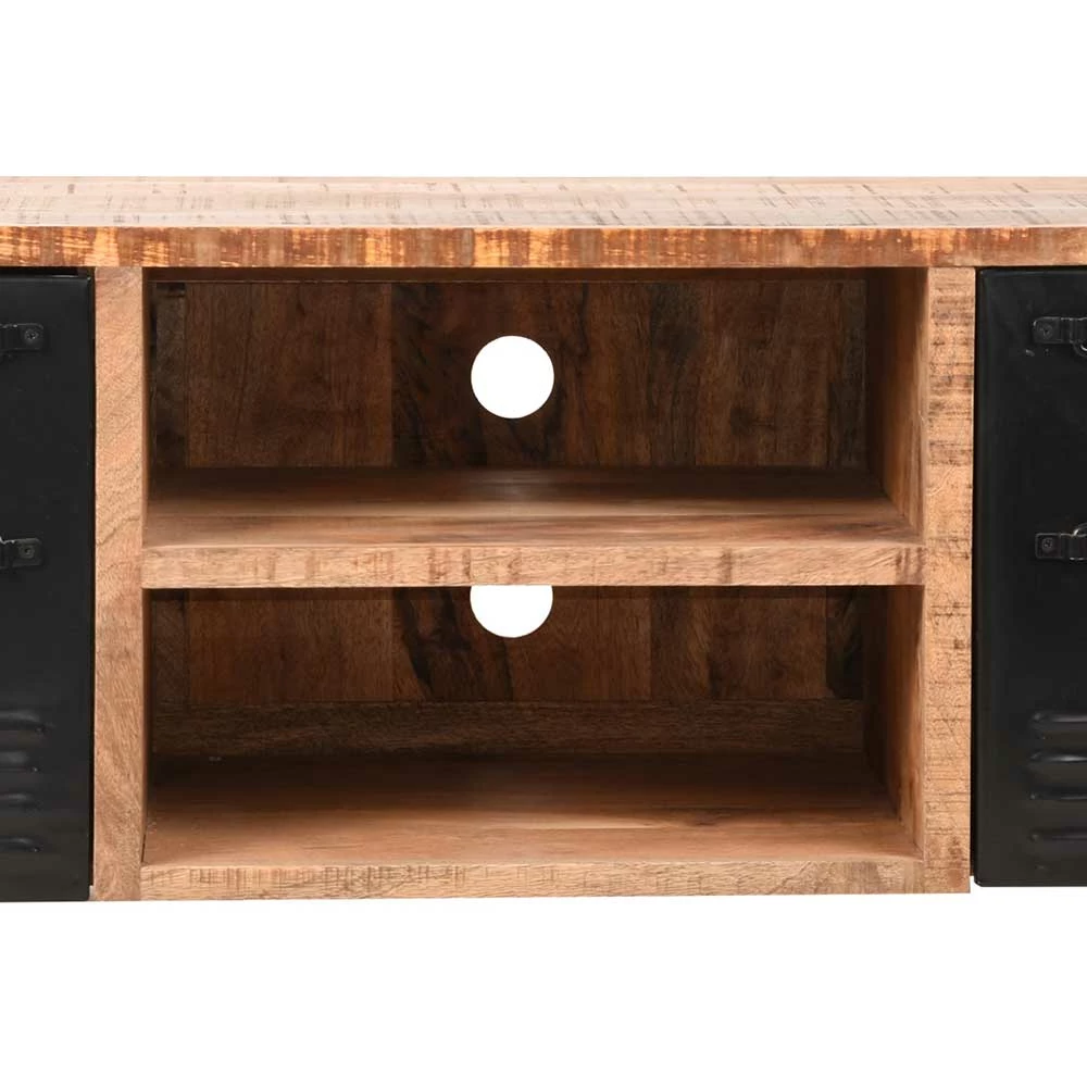 - Robustes TV-Lowboard in Mangoholz Naturfarben und Schwarz