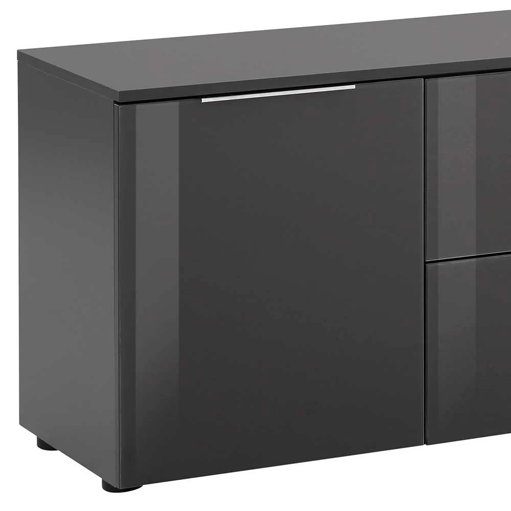 - Oberflächen kratzfest melaminbeschichtet in Anthrazit, Front mit Glas beschichtet
