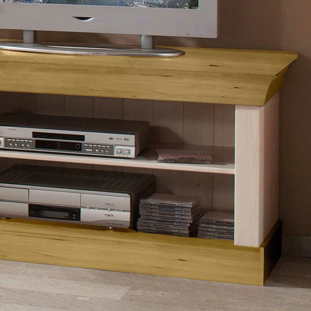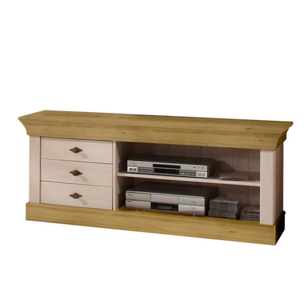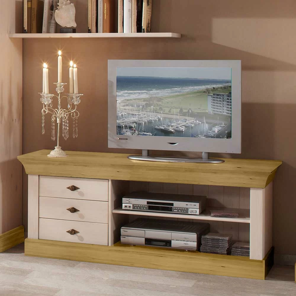 - Formschönes TV-Lowboard in Weiß und Kiefer laugenfarbig