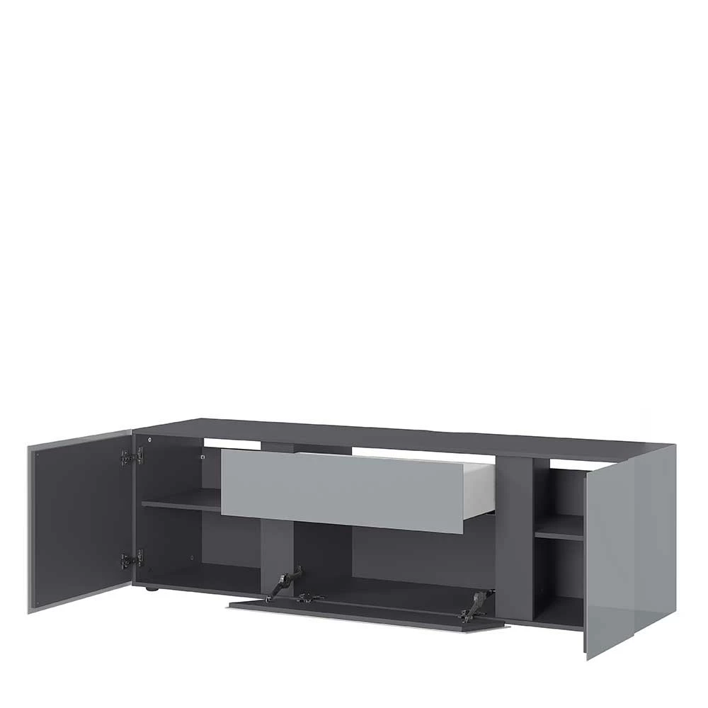 - Schickes TV-Lowboard in Silber- und Dunkelgrau