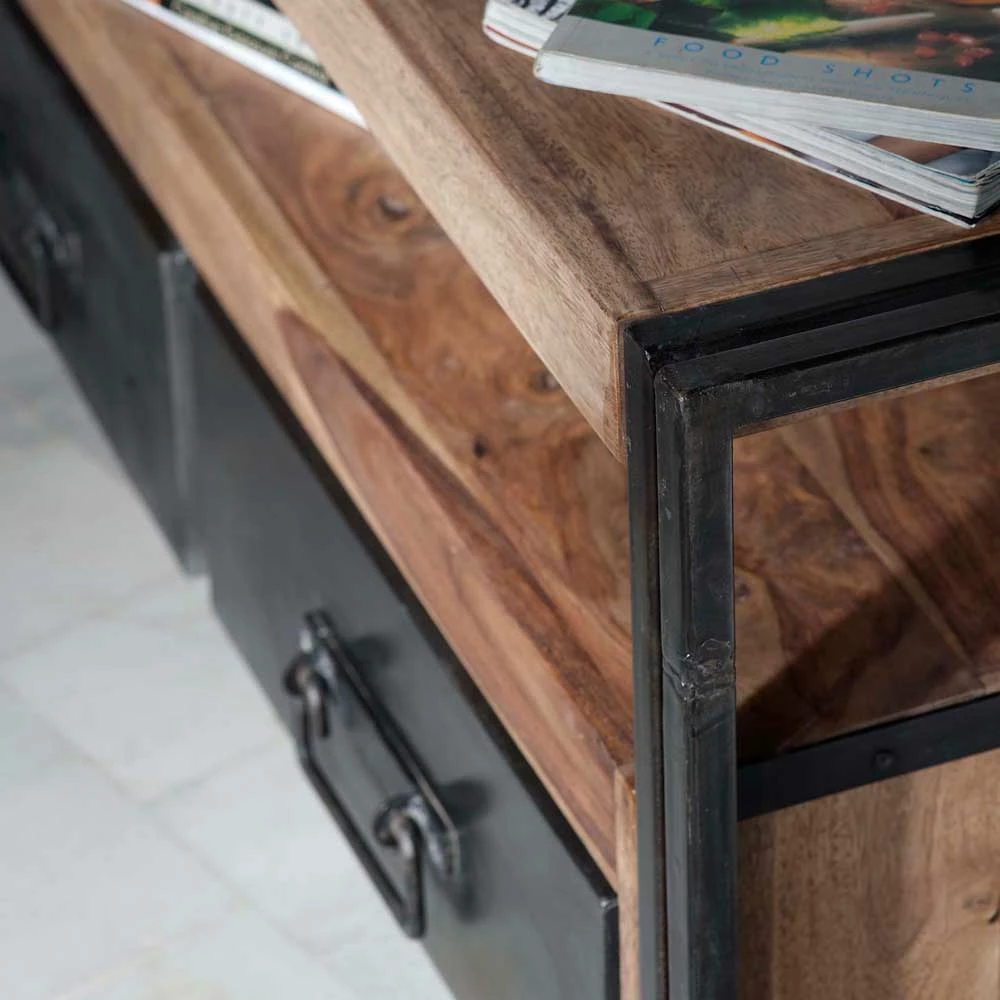 - Doppelrohrrahmen und Schubladen aus schwarzem Alteisen