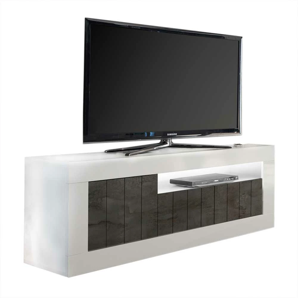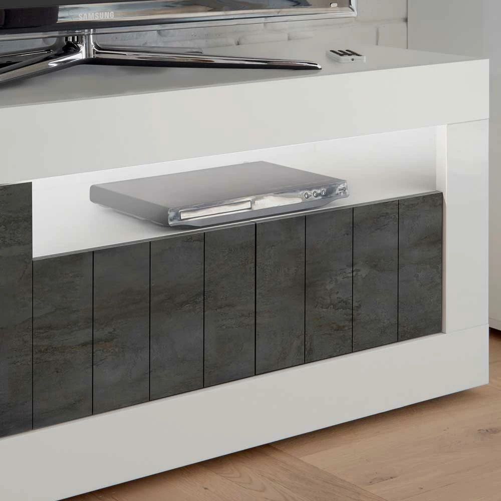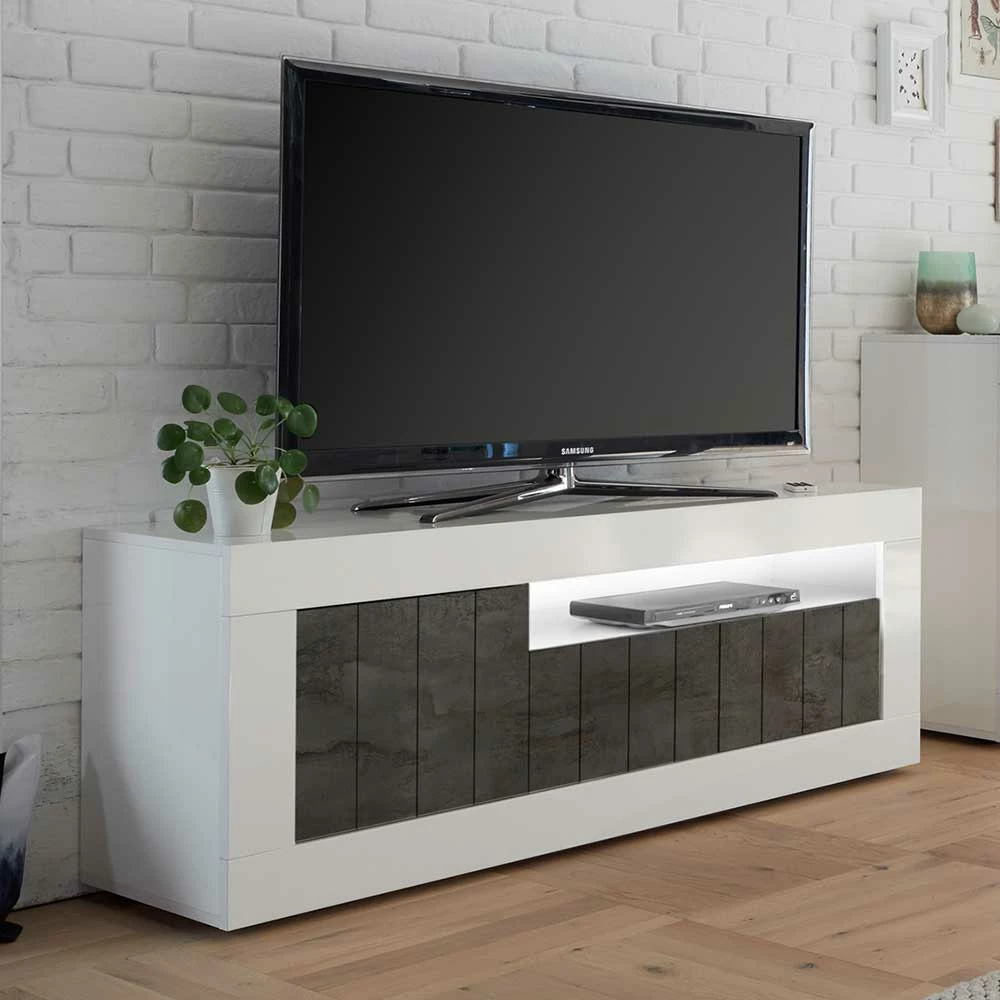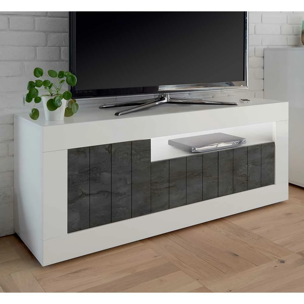 - Schickes TV Board in Weiß Hochglanz und Dunkelgrau