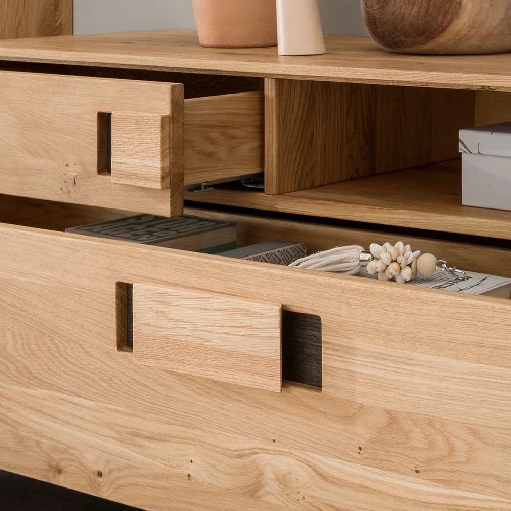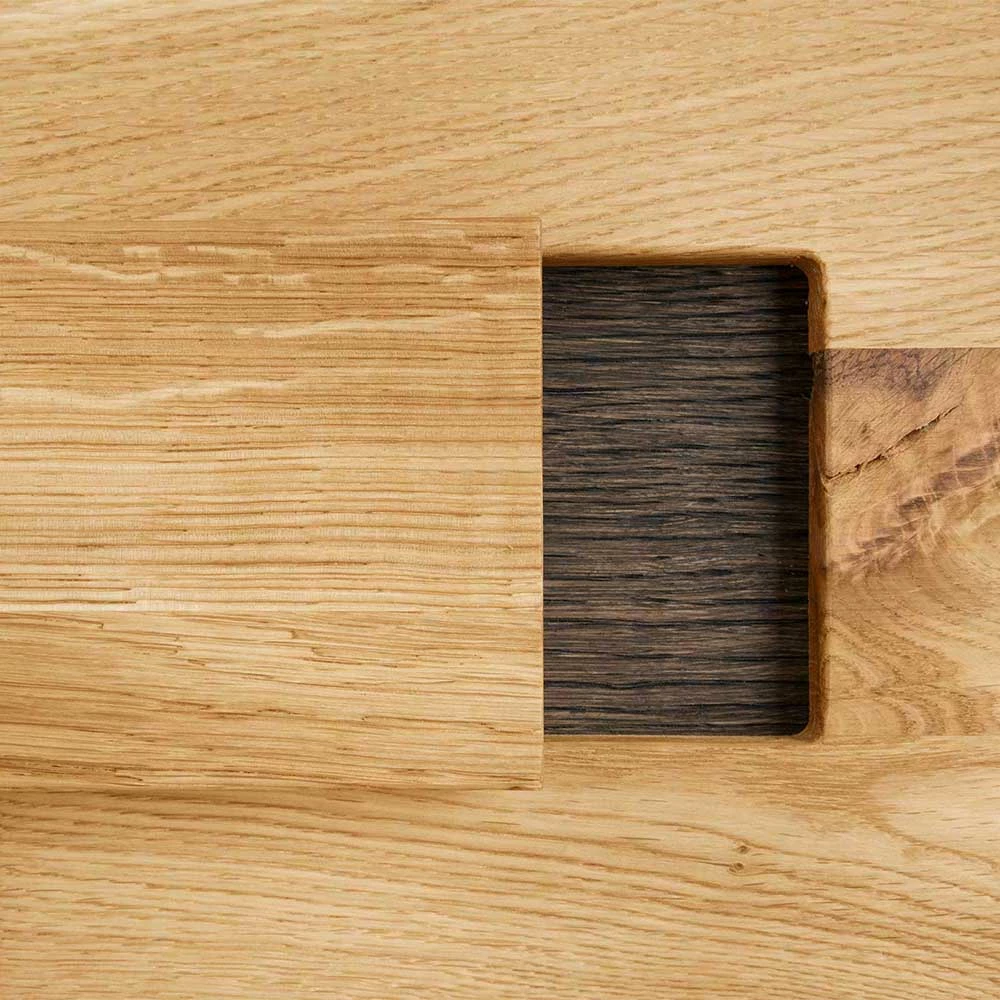 - Aus Wildeiche (Front) und Eiche (Korpus) Massivholz angefertigt