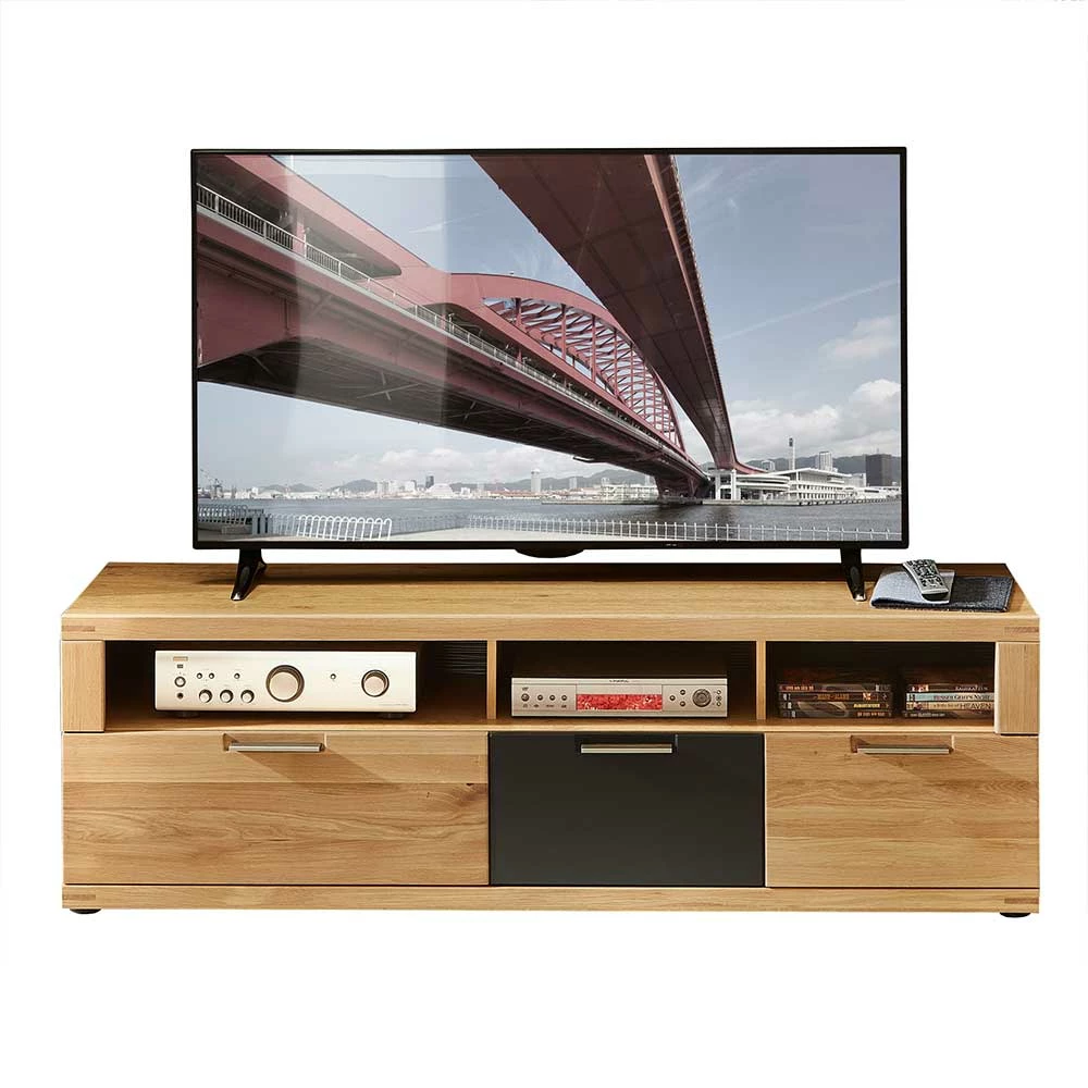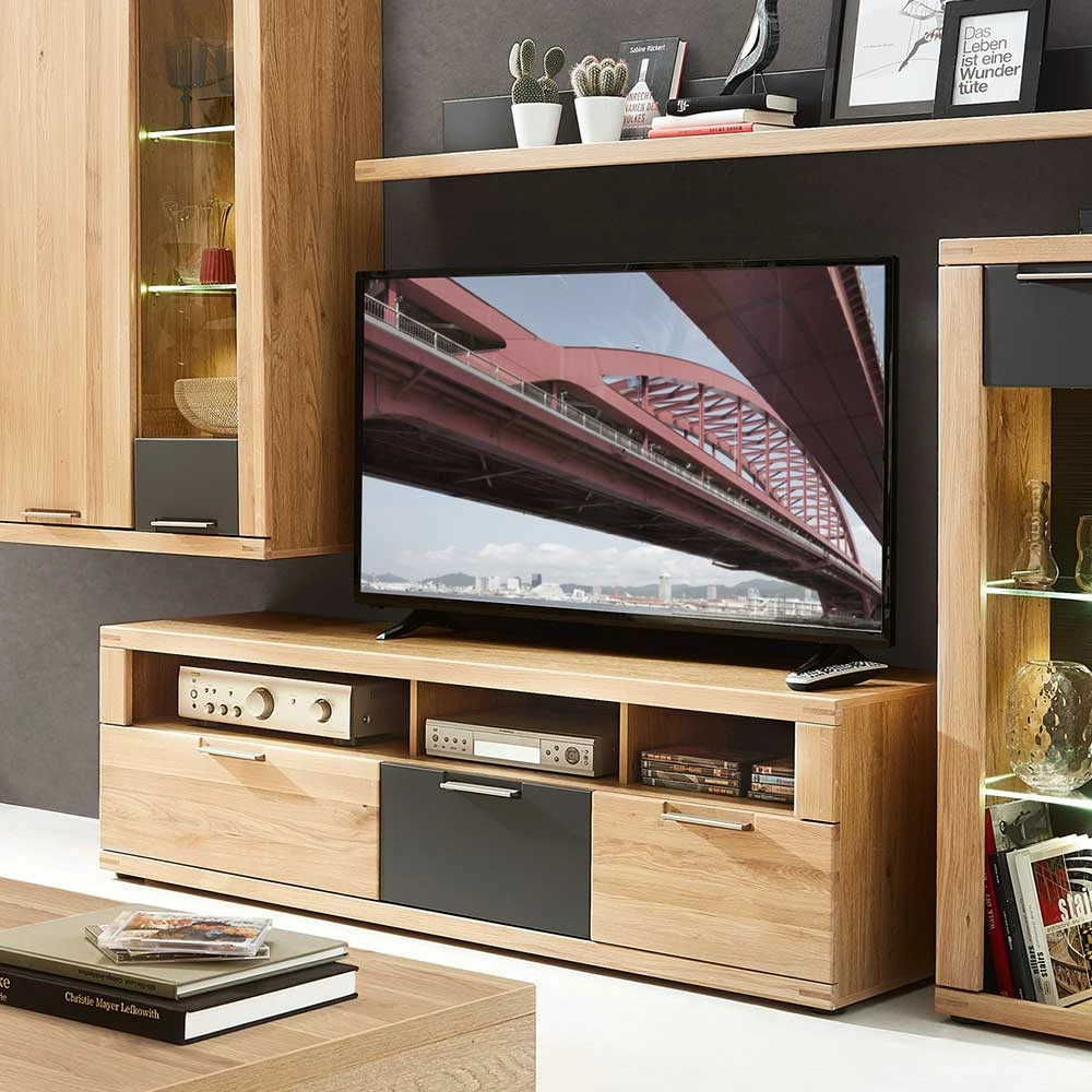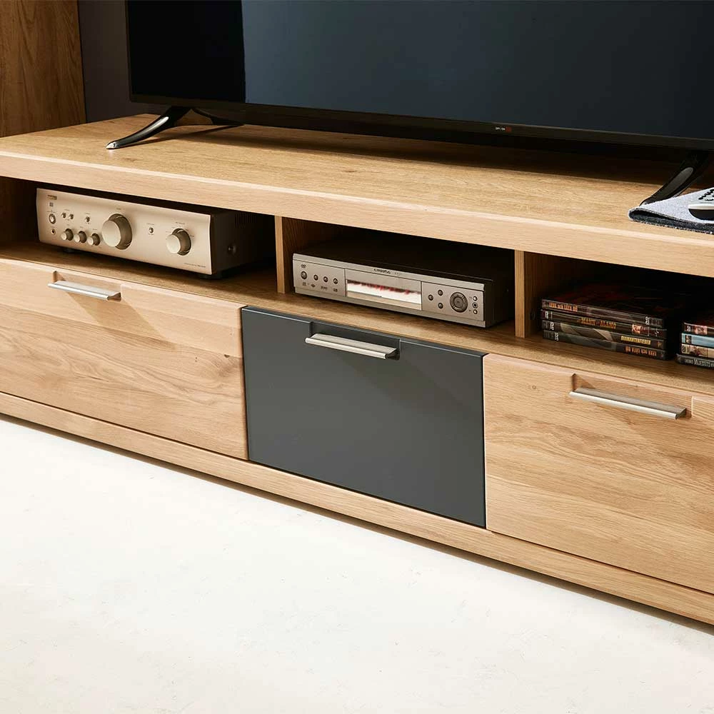 - Auffallende TV-Bank in Eiche Bianco und Anthrazit