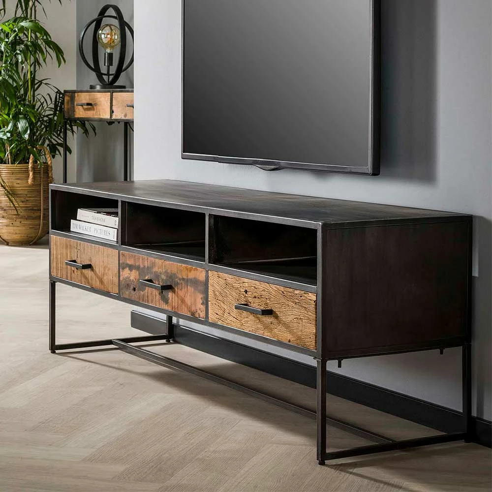 - Dekoratives TV Lowboard in Holz Naturfarben und Schwarzgrau