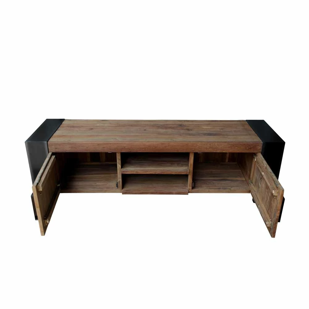 - Kantiges TV-Lowboard in Teak Antik und Schwarz