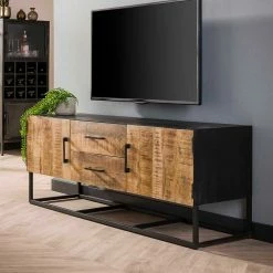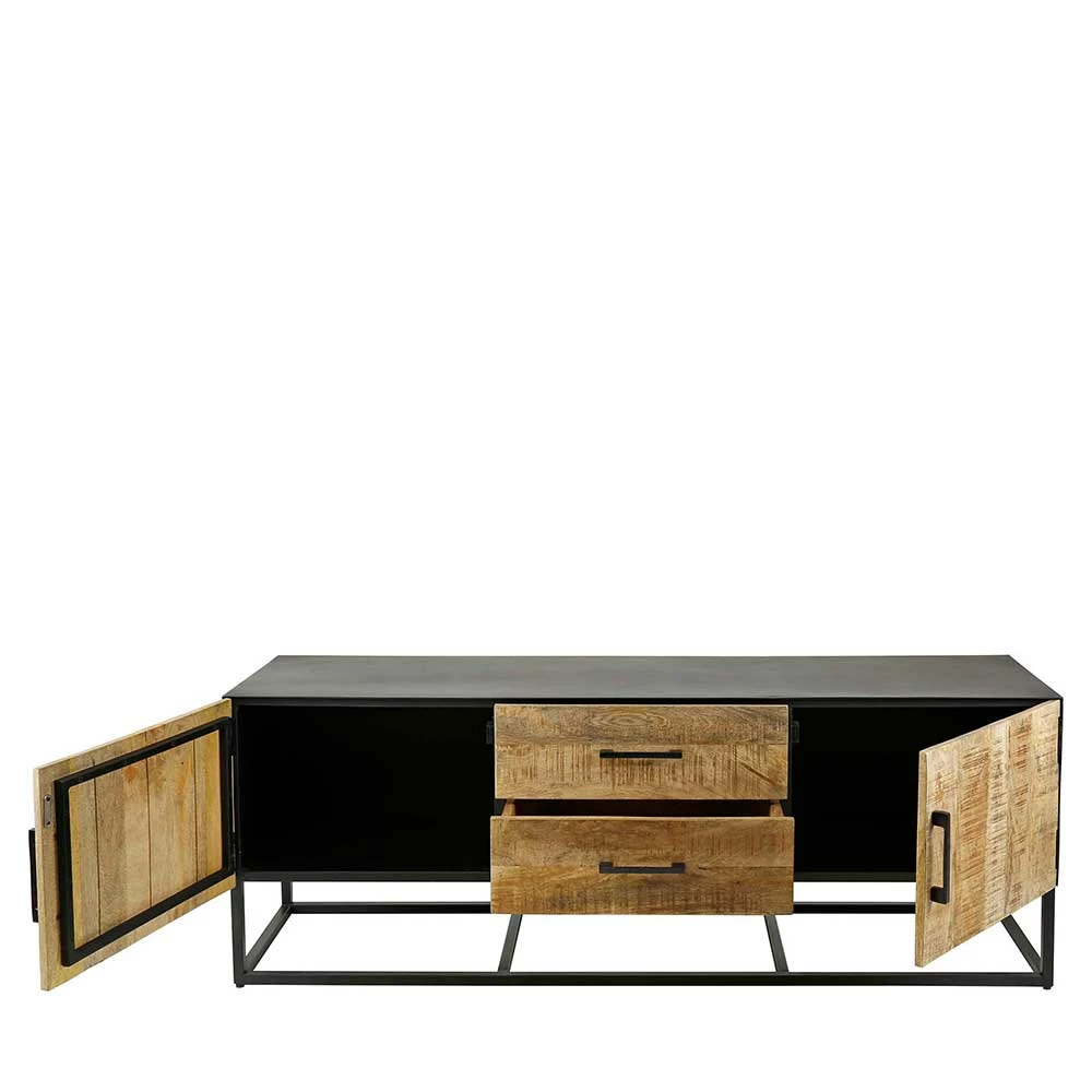 - Praktisches TV-Element in Mangoholz White Wash und Schwarzgrau