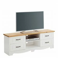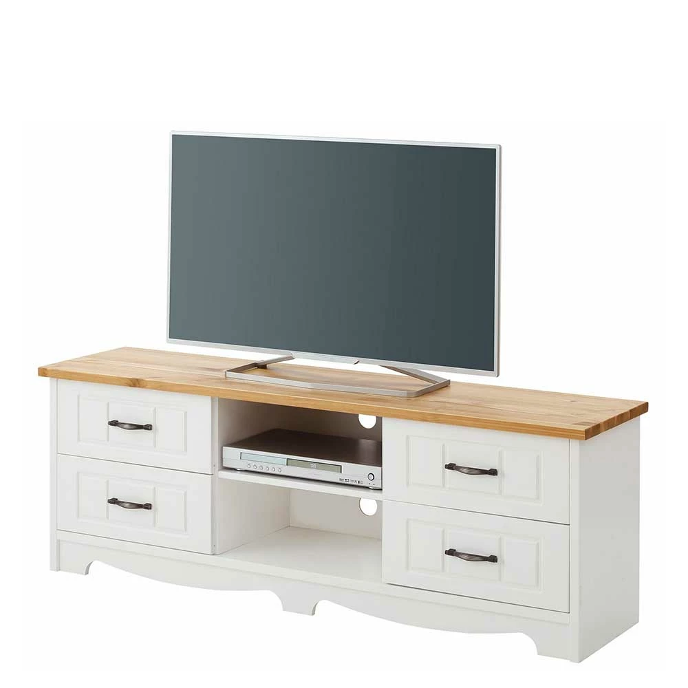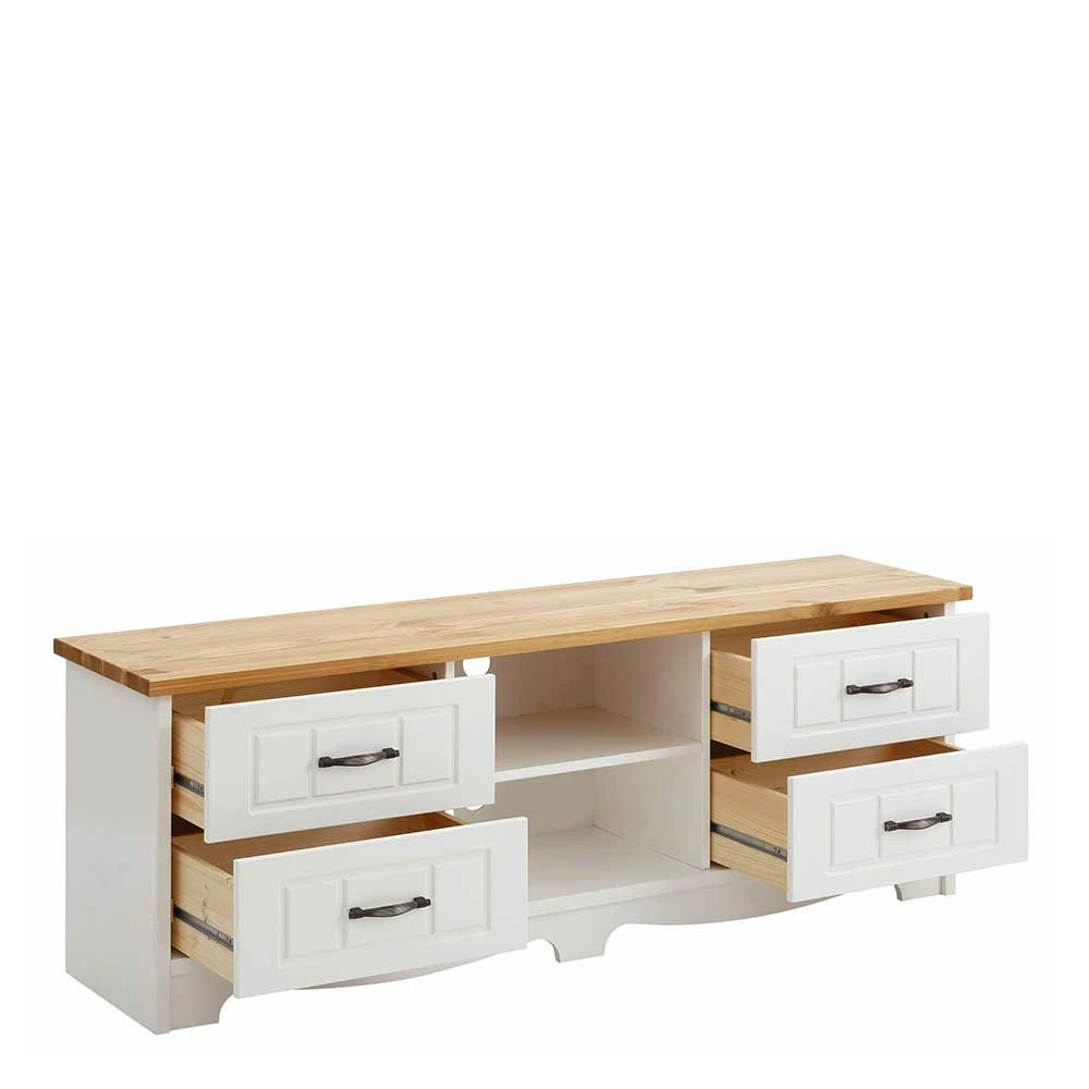 - Charmantes TV-Lowboard in Kiefer Weiß und Honigfarben