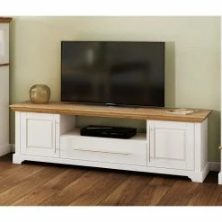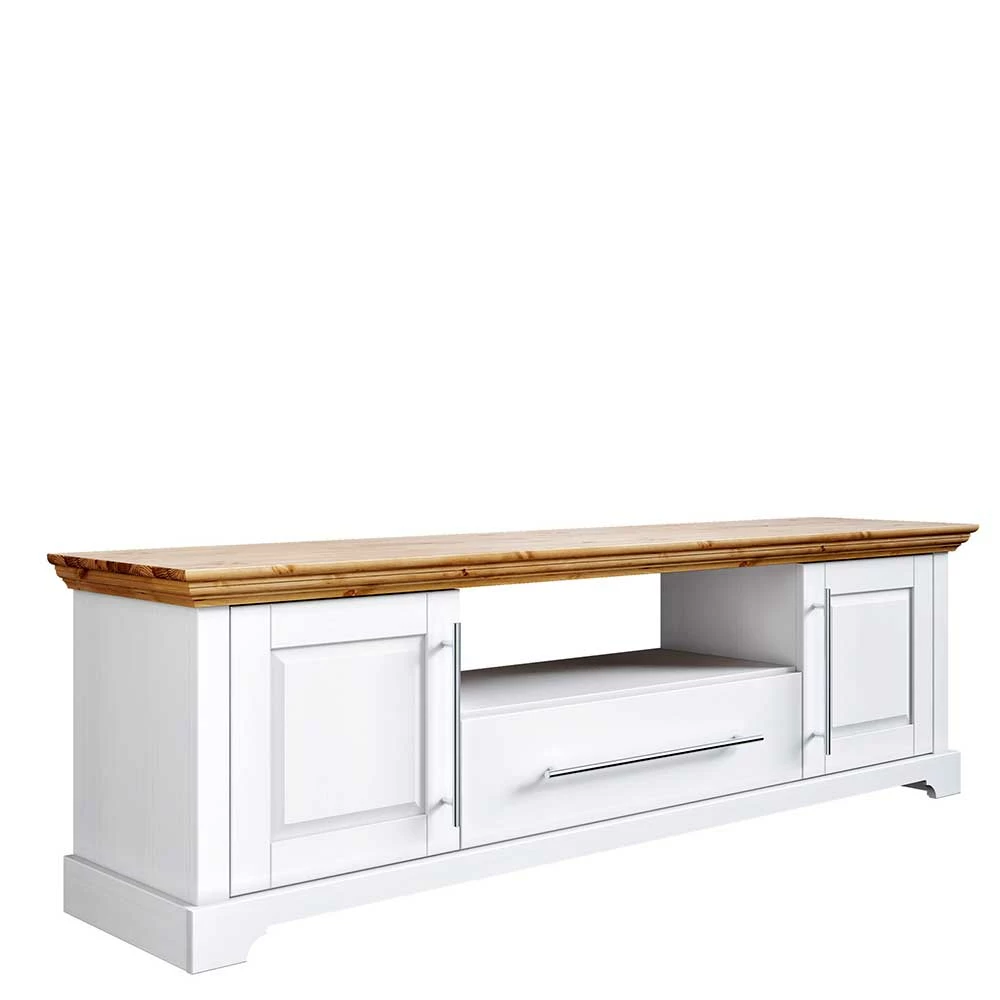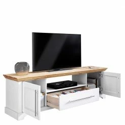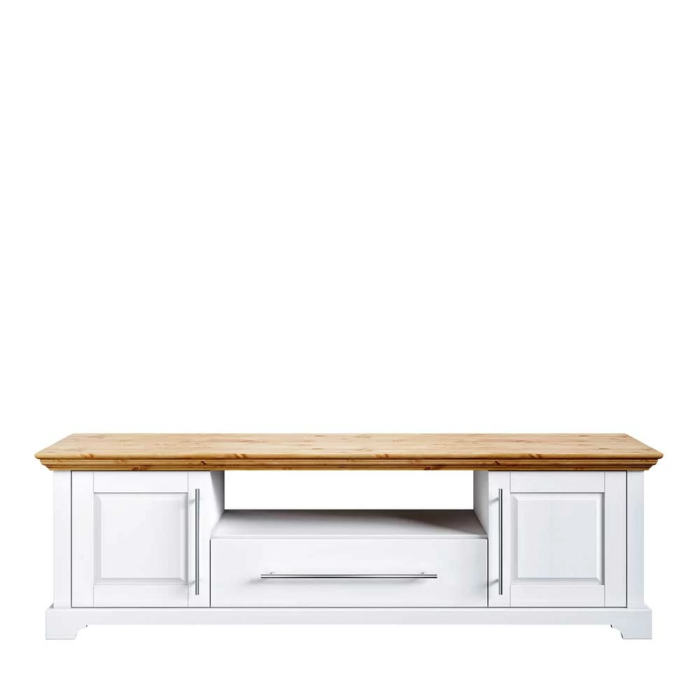 - Hübsches TV Lowboard in Weiß und Kieferfarben