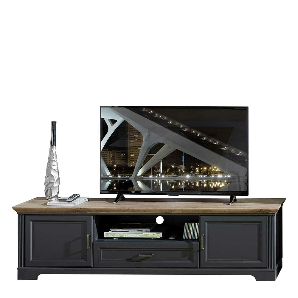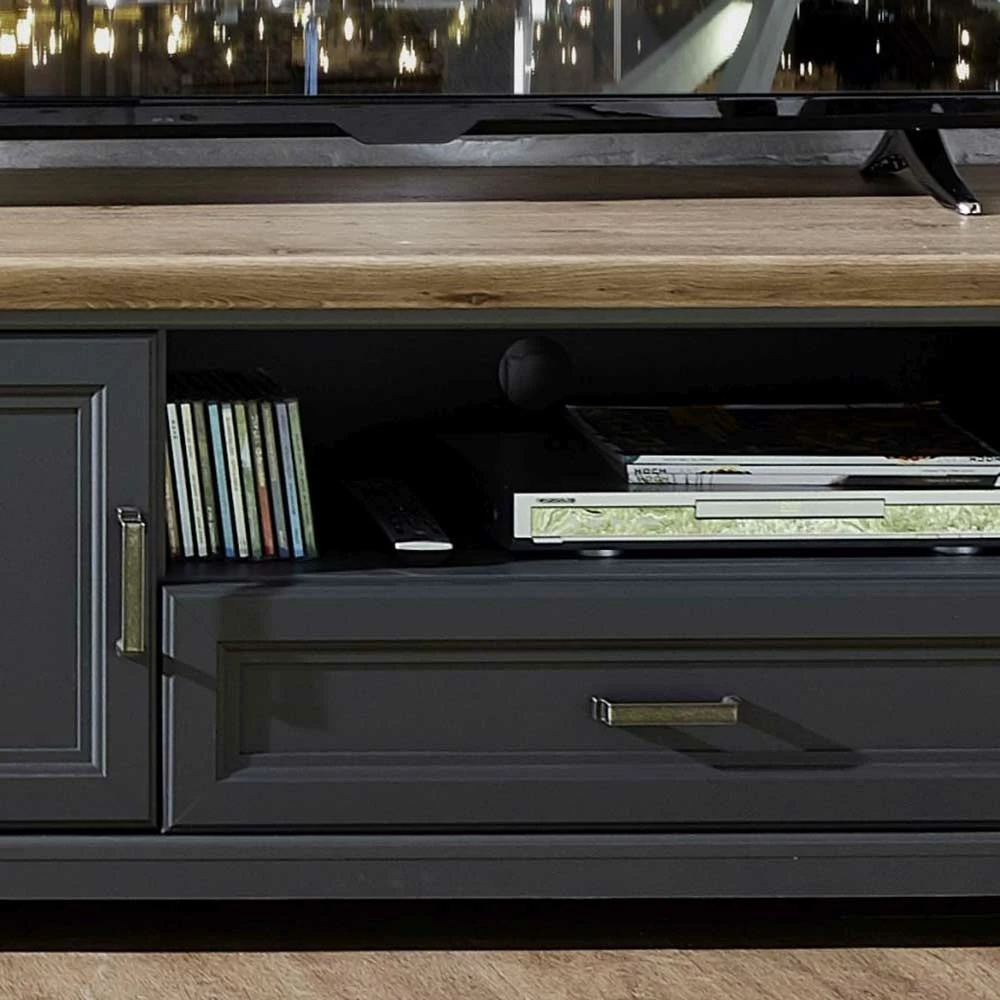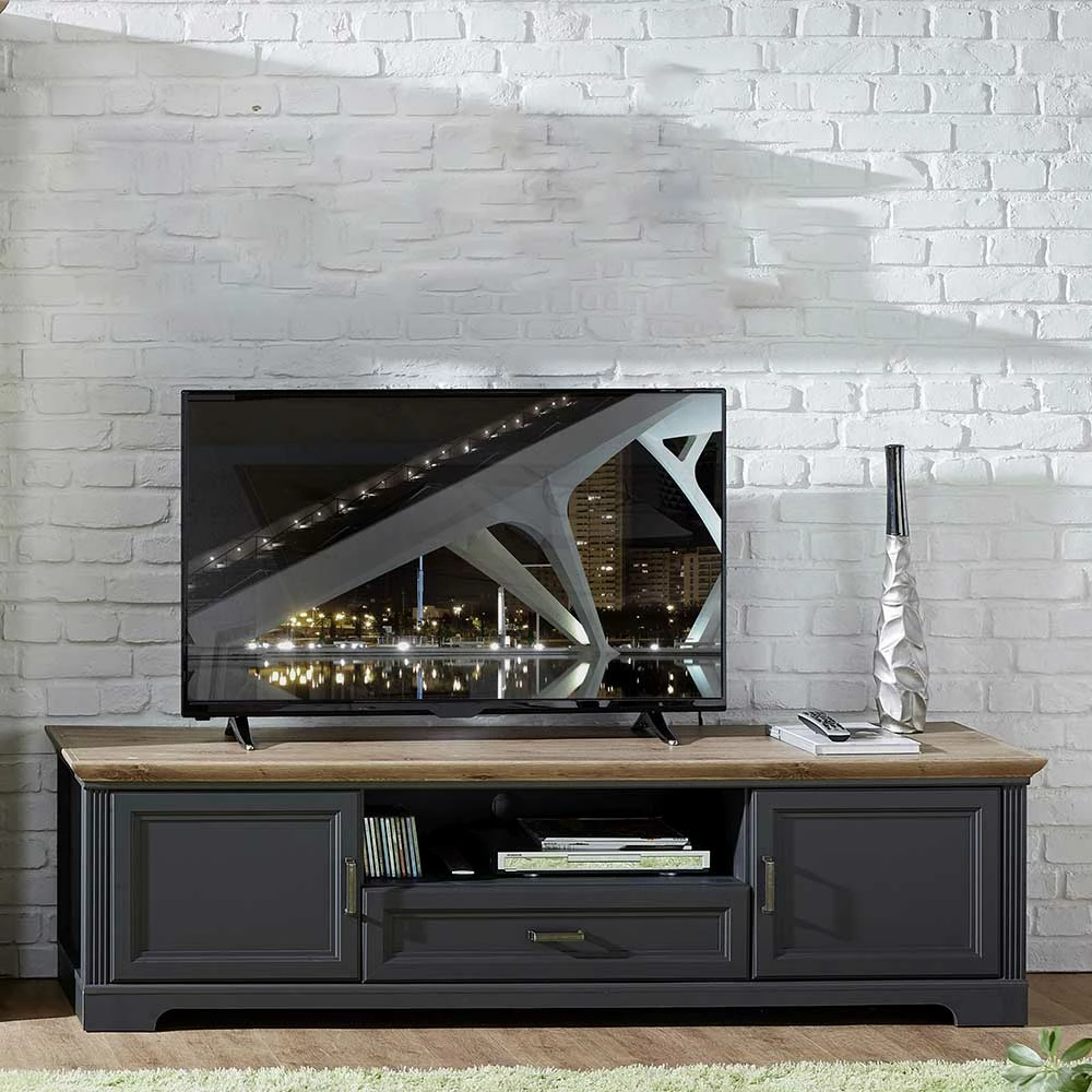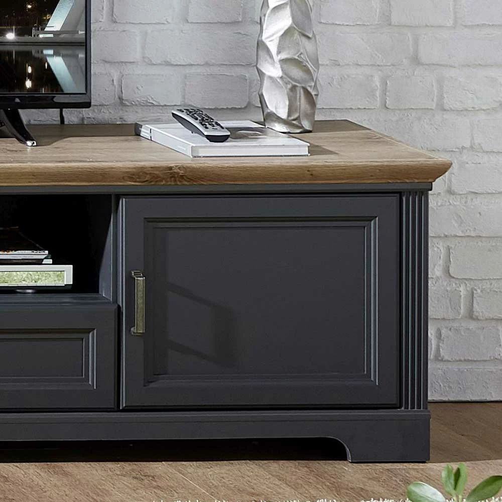 - Geschmackvolles TV-Board in dunkel Grau und Eichefarben