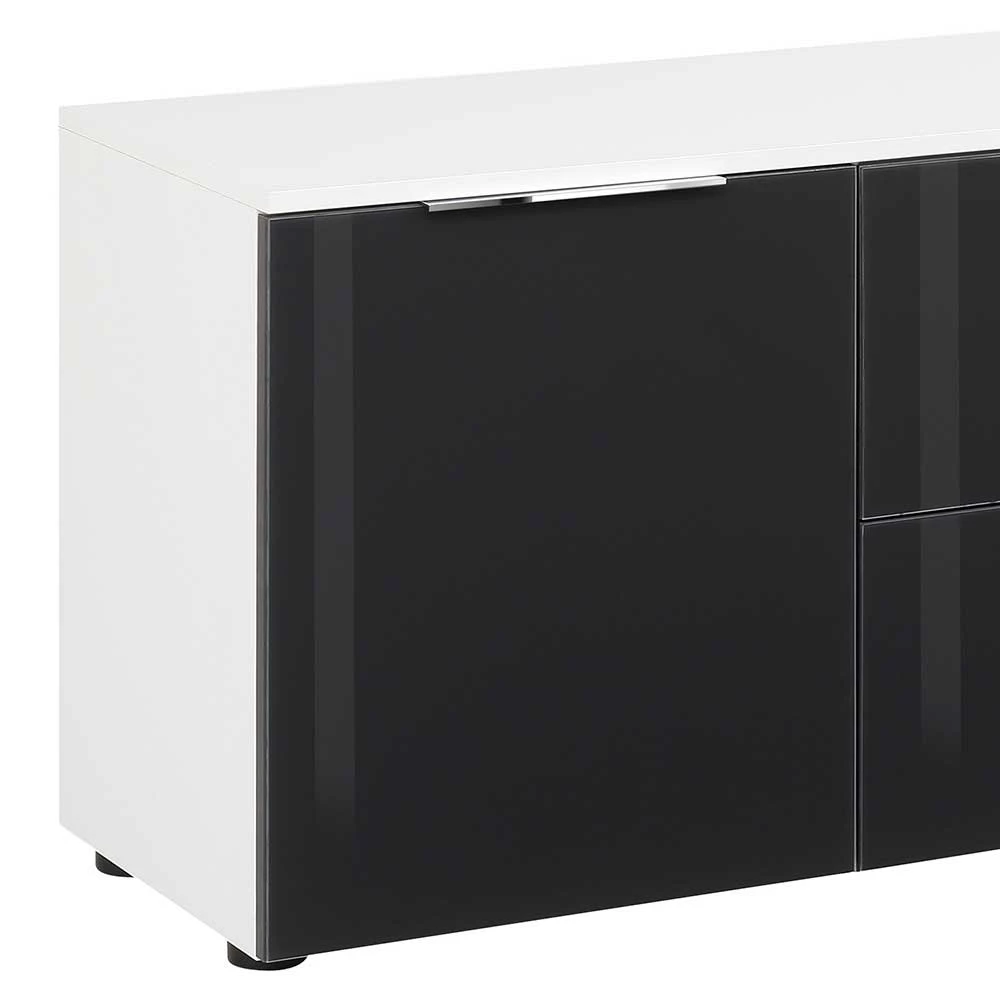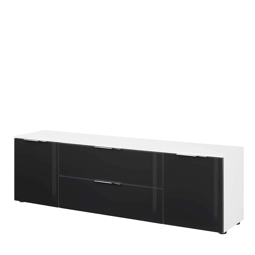 - Faszinierendes TV-Board in Weiß matt und Anthrazit