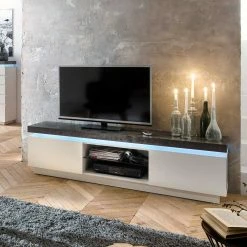 - Trendiges TV-Lowboard in Weiß und Grau