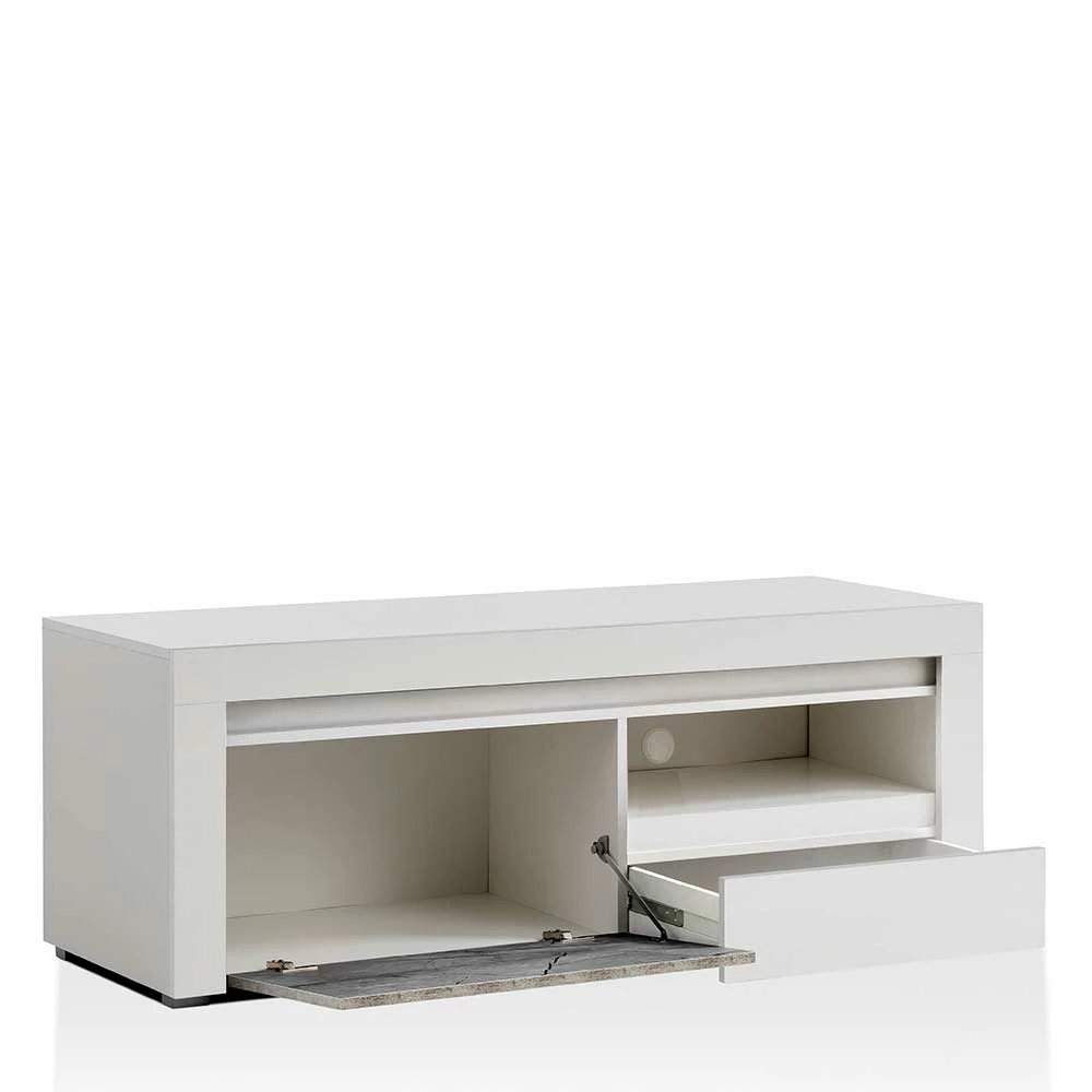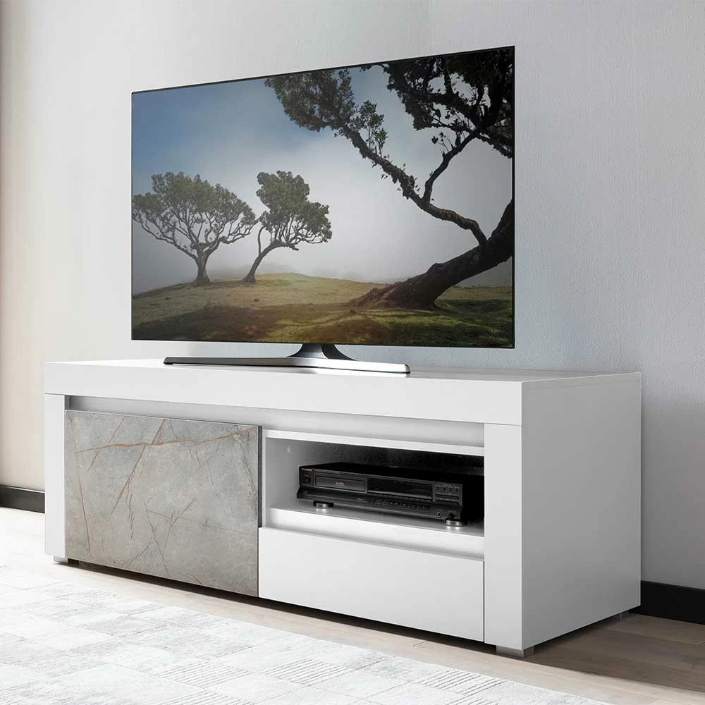 - Smartes TV-Board in Weiß und Grau