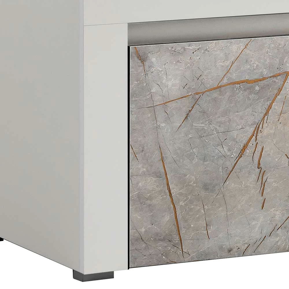 - Oberflächen in Weiß und Marmor-Optik Grau melaminbeschichtet
