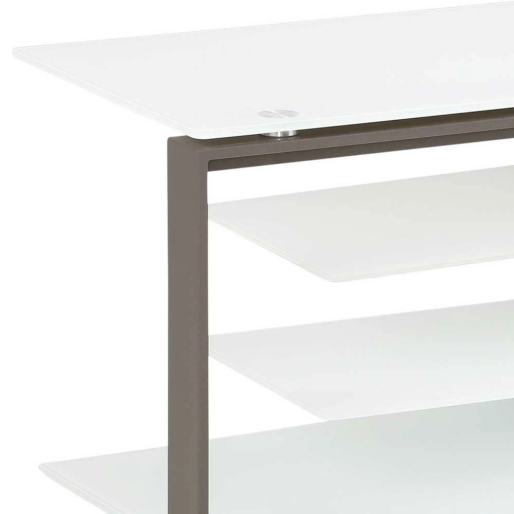 - Weiß lackierte Glasoberflächen, Rahmen und Rückwand aus pulverbeschichtetem Metall in Anthrazit