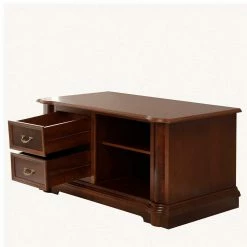 - Links zwei kleine Schubladen auf Holzauszug