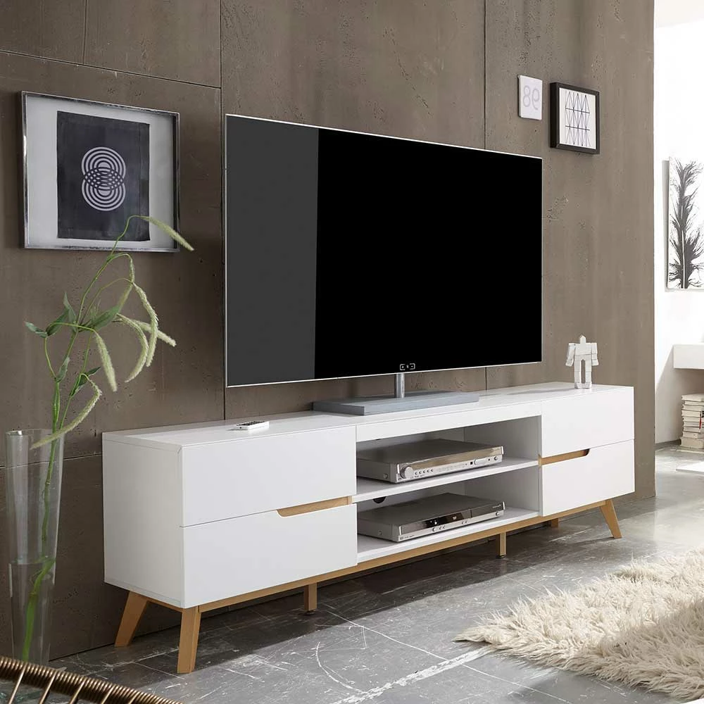 - Klasse TV-Lowboard in Weiß und Asteichefarben